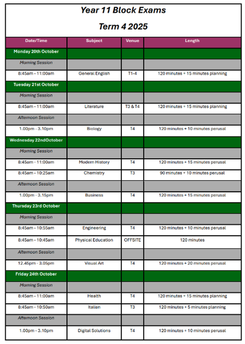 The Year 11 Community Day at Green Island will take place on Monday, 27 October, to celebrate the transition of Year 11 students into their final year of schooling. The Ed-Smart permission slip for the day is available and can be completed by following the link that has been sent via email.