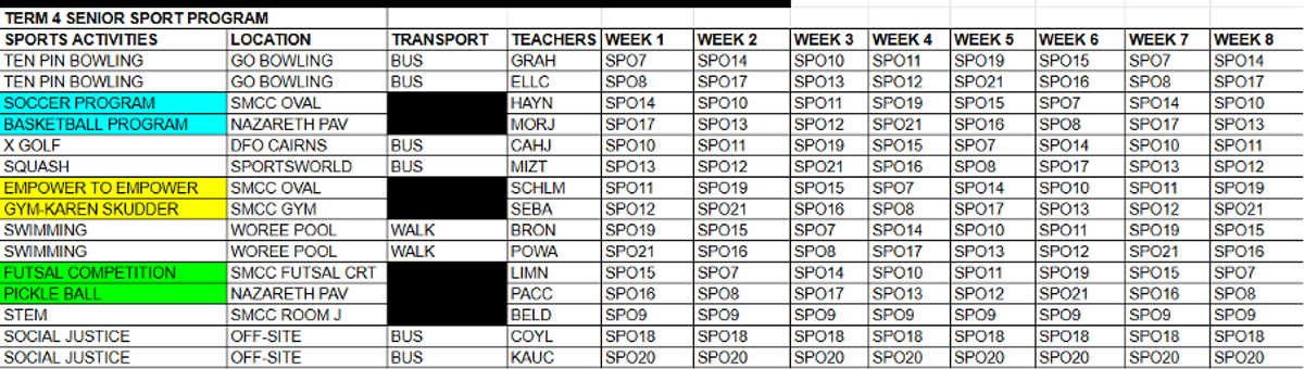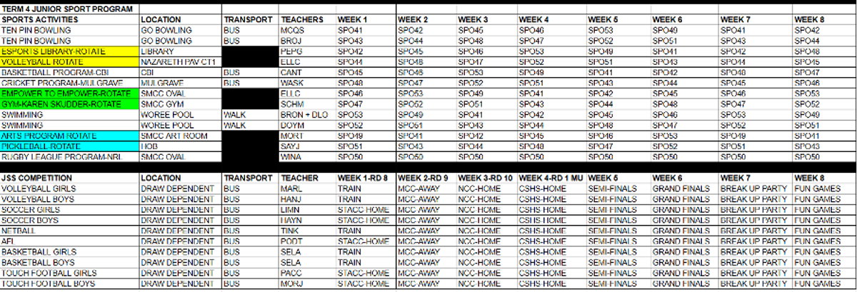 This term, we’re mixing things up with a fresh lineup of sports activities to keep everyone moving and motivated. Please take a moment to review the weekly schedule so you know what’s on and can come prepared—especially for swimming sessions!
