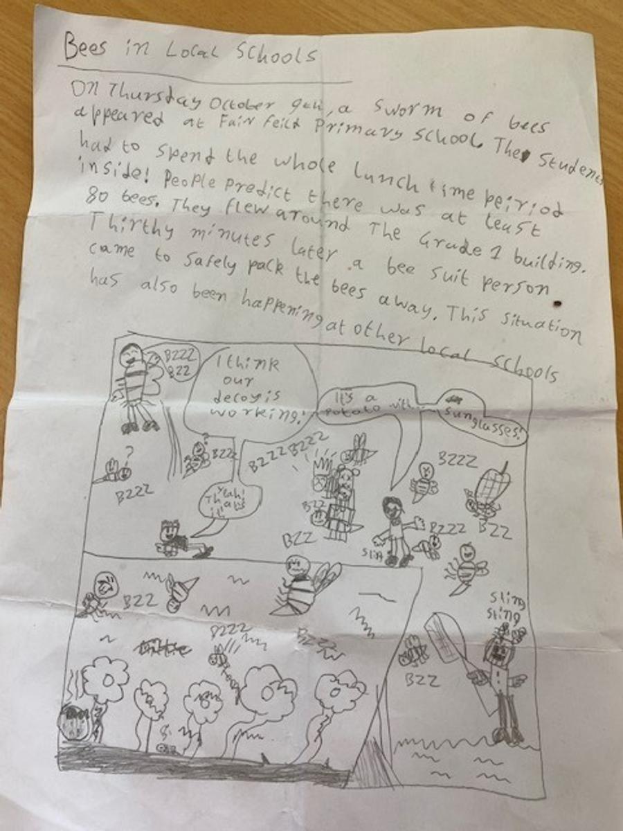 Last Thursday a swarm of bees descended upon the Year 1/2 area at 12.30pm. This meant that the students were unable to play outside due to safety reasons. Fortunately, a beekeeper was organised to safely remove the bees prior to 3.30pm.