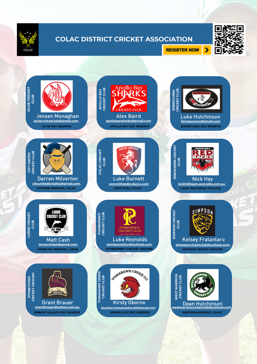 With the junior cricket season right around the corner, the school is providing information on local cricket clubs within the wider Barwon region. Please see attached GCA-BPCA flyer with junior club details. Use the QR code to register.