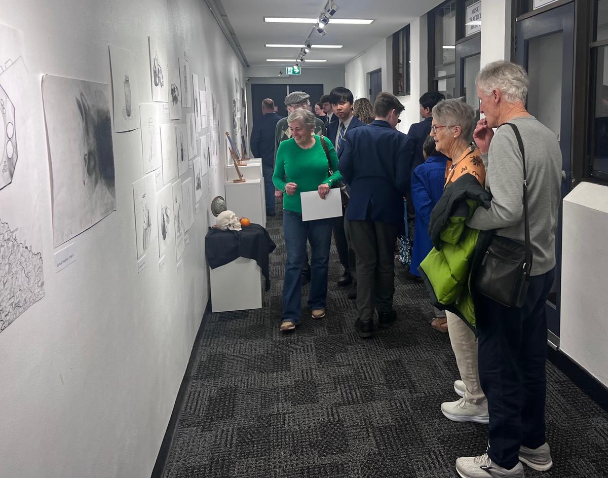 Yesterday, students proudly exhibited their artworks, with many appreciative parents and family members attending for a viewing, afternoon tea, and certificate presentation. A special thank you to Fergus Fung, who has worked with the group over the past two terms, generously sharing his skills and creative advice. Fergus has become a much-valued and popular mentor among the boys.