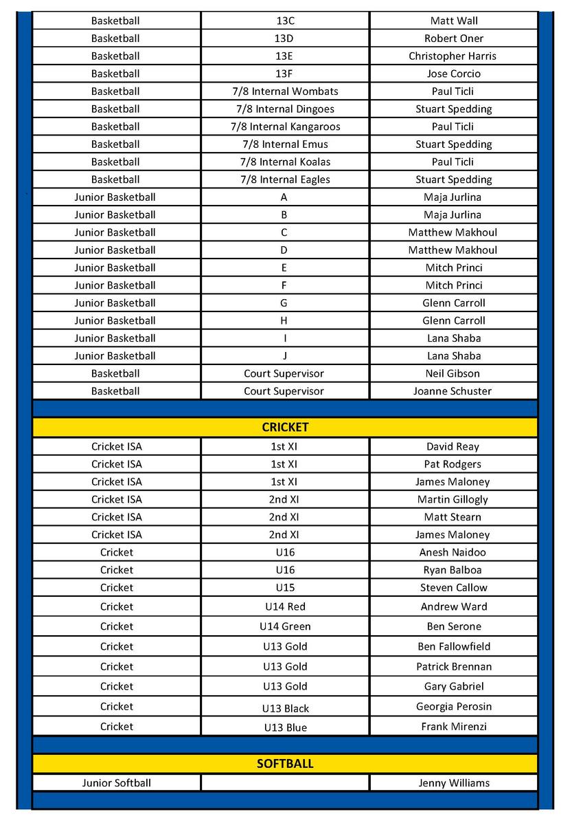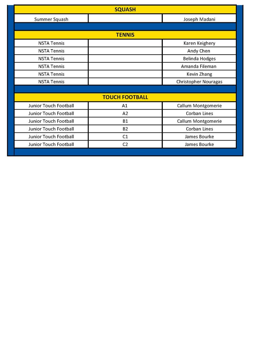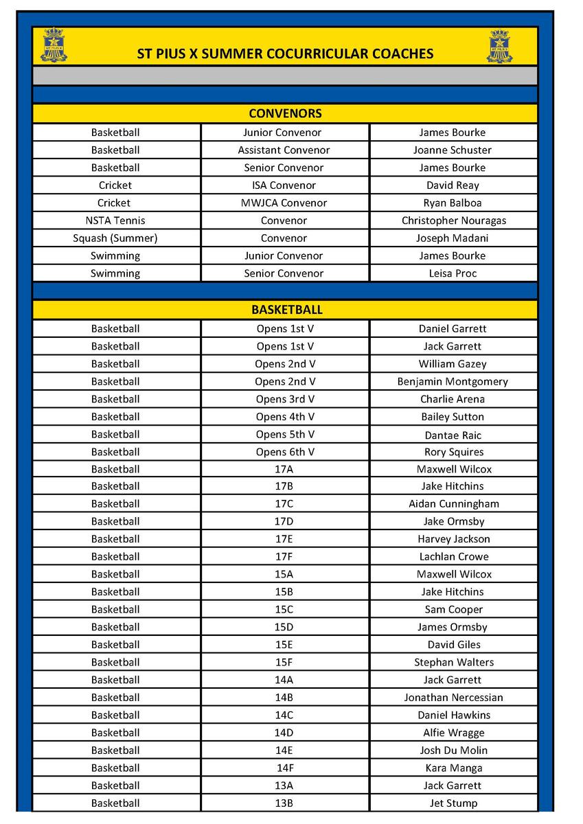 I am pleased to announce the following list of our summer sport cocurricular coaches and convenors.