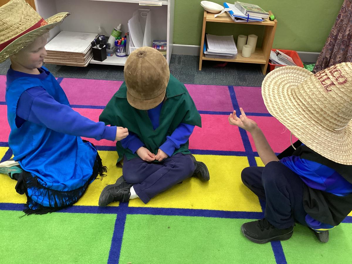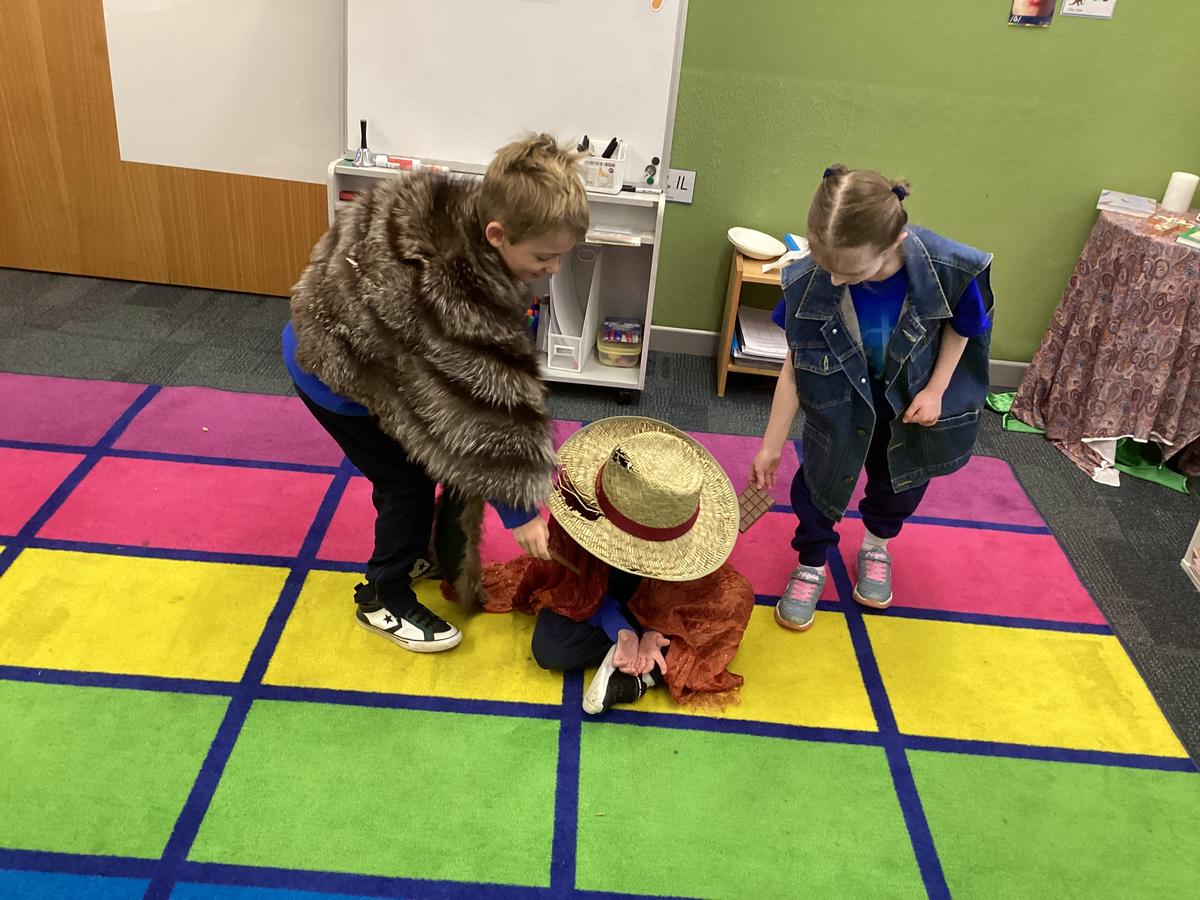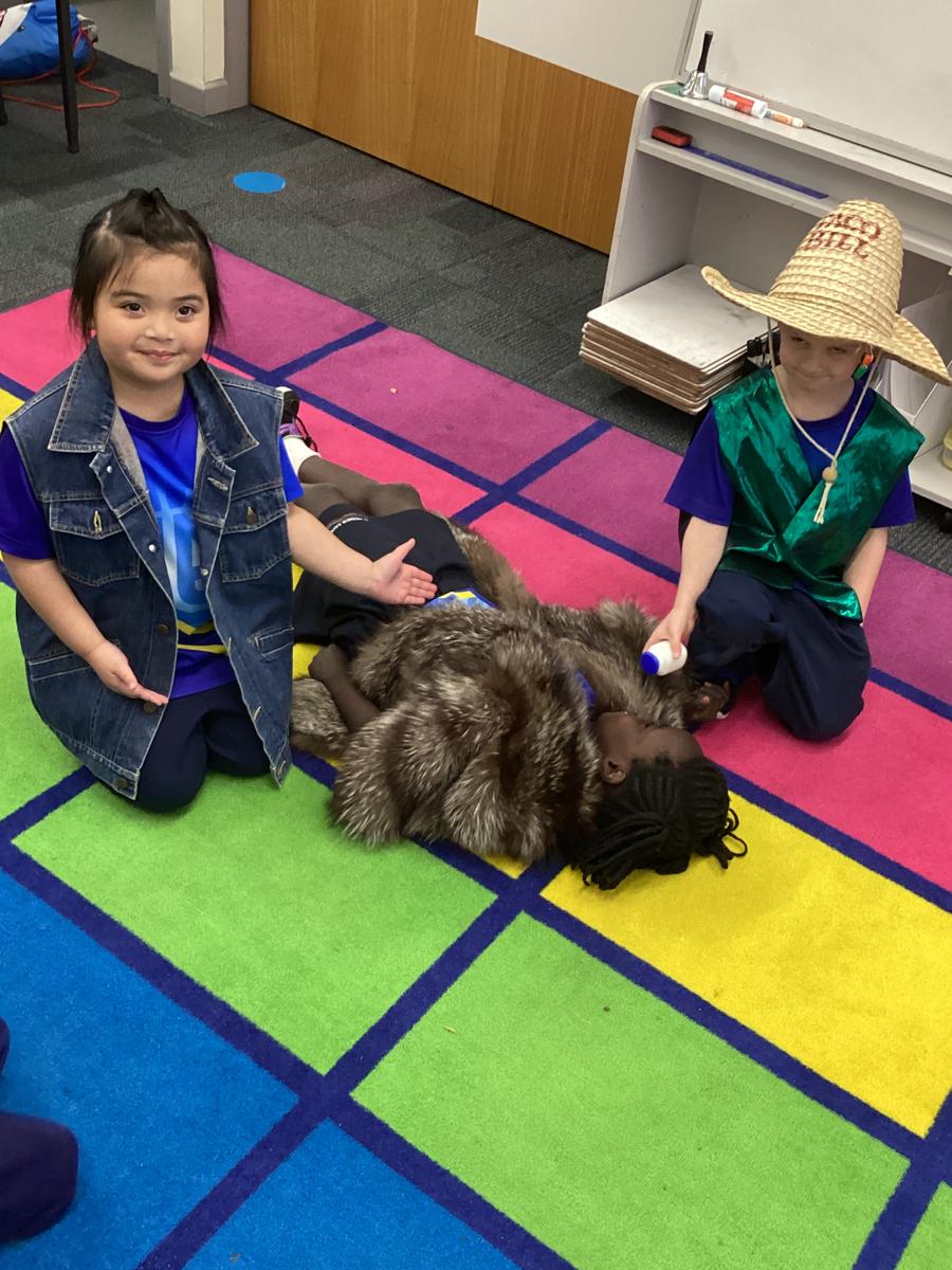 God teaches us that we are made in God’s image; therefore, each one of us reflects God. The students have been discussing ways to show kindness to their neighbours through their words and actions. The students worked in small groups, and each group portrayed one of the following statements: I was hungry and you gave me food, I was thirsty and you gave me something to drink, I was naked and you gave me clothing, I was sick and you took care of me.