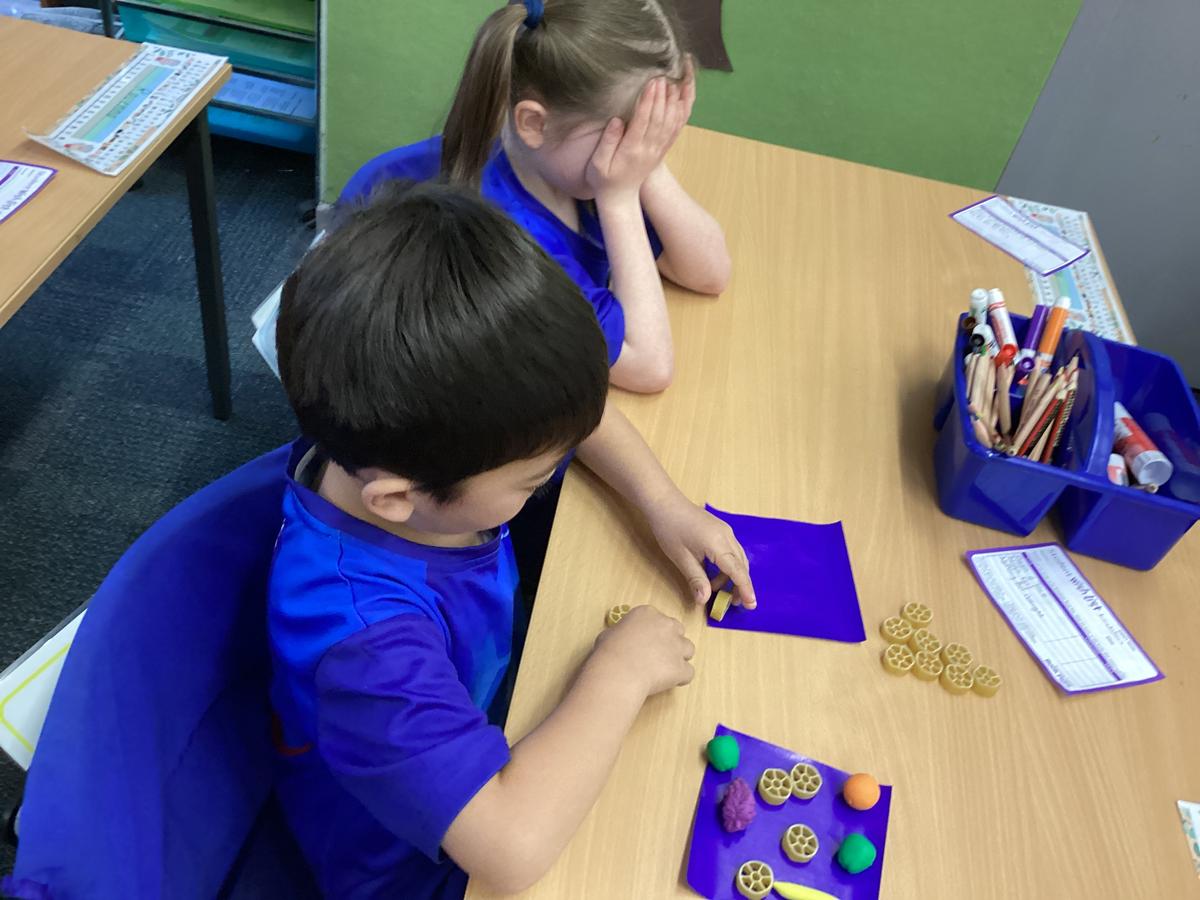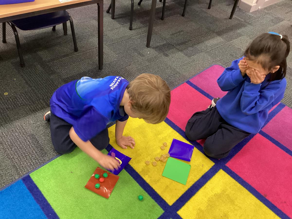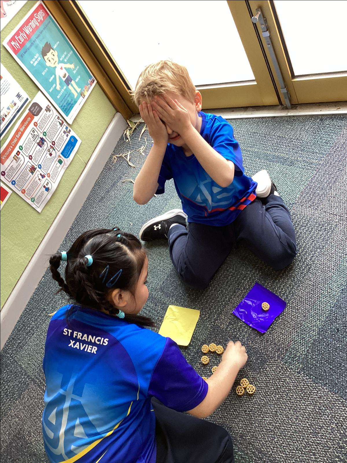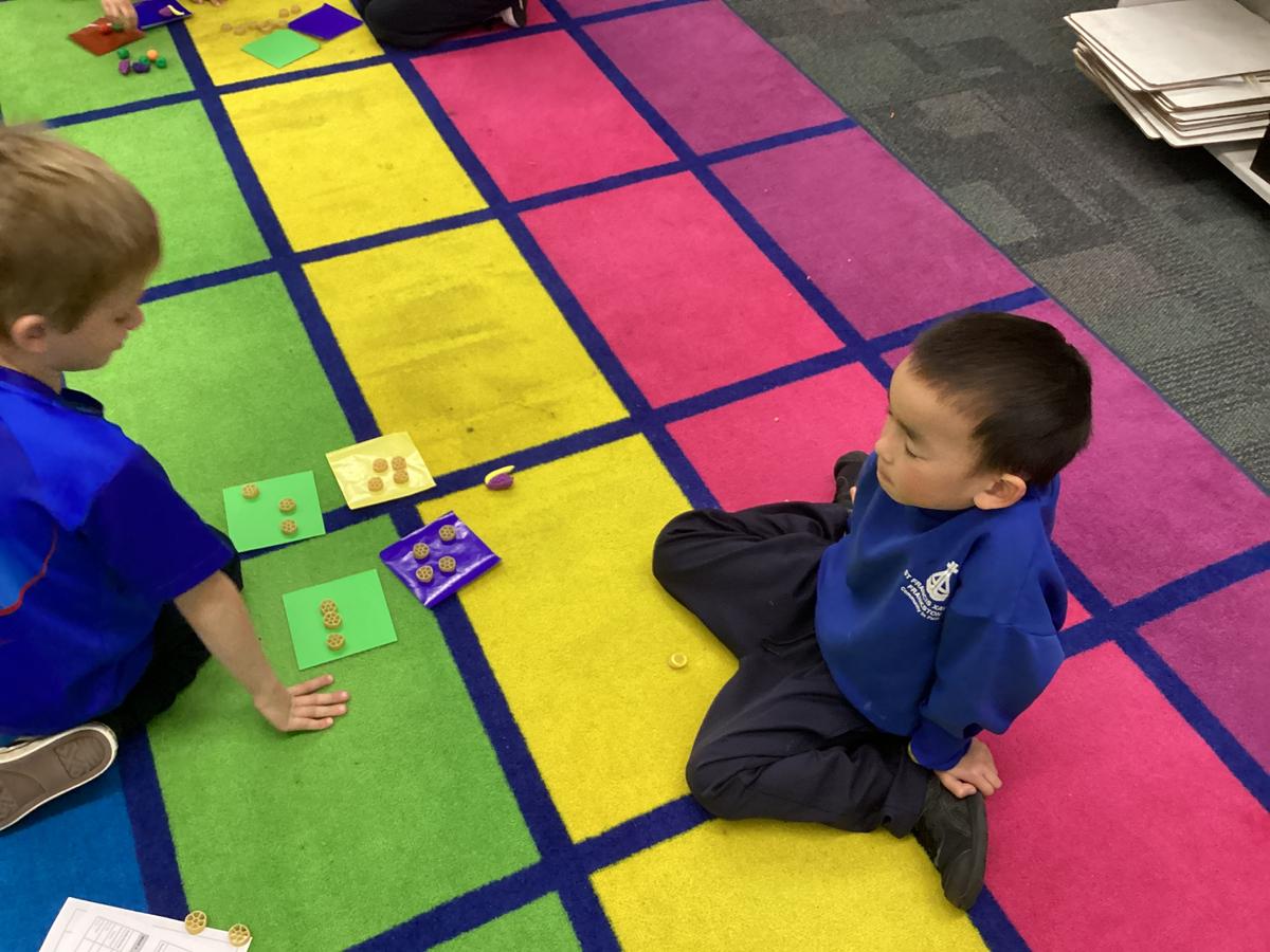This week, the students were introduced to the foundations of multiplication and division. They played a game called “Fair Share or Not Fair Share.” The purpose of the game is to help students identify equal and unequal groups, which is a fundamental skill. Partner A divided objects into groups while Partner B closed their eyes. Then, Partner B counted the groups and determined whether the objects were shared equally. If the groups were equal, they said “Fair Share,” and if they were unequal, they said “Not Fair Share.”