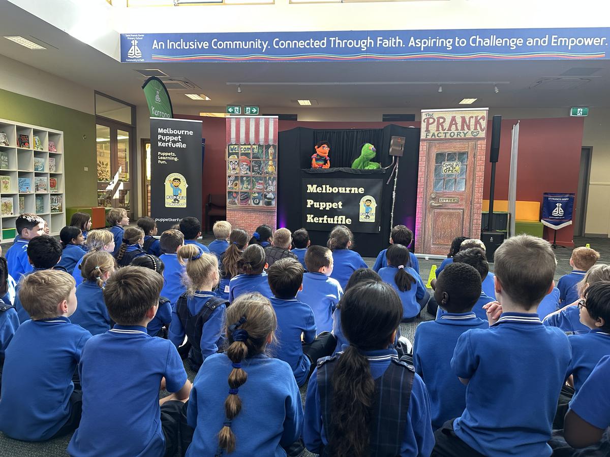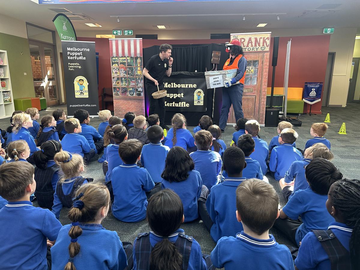 Last Tuesday afternoon, our students were treated to a lively performance of the Surprise, Surprise! Puppet Show. This high-energy show was set in a quirky Prank Factory, filled with original songs, jokes, sound effects, and plenty of fun suspense.