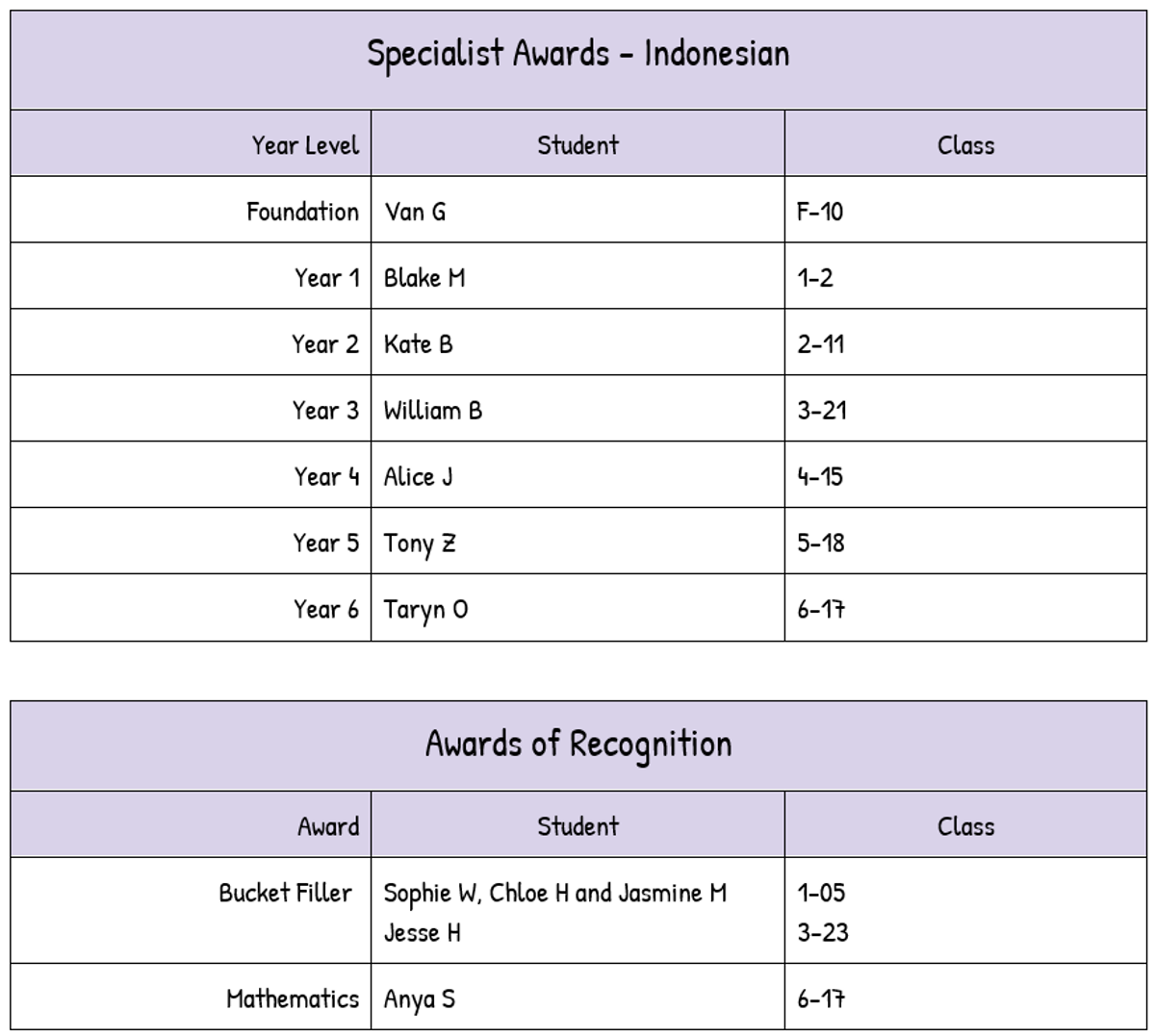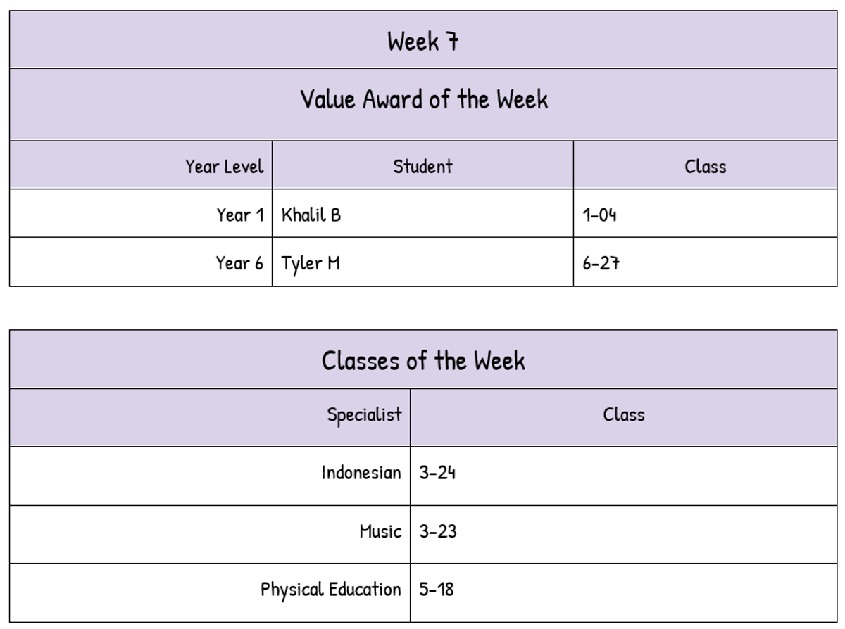 Weekly Awards