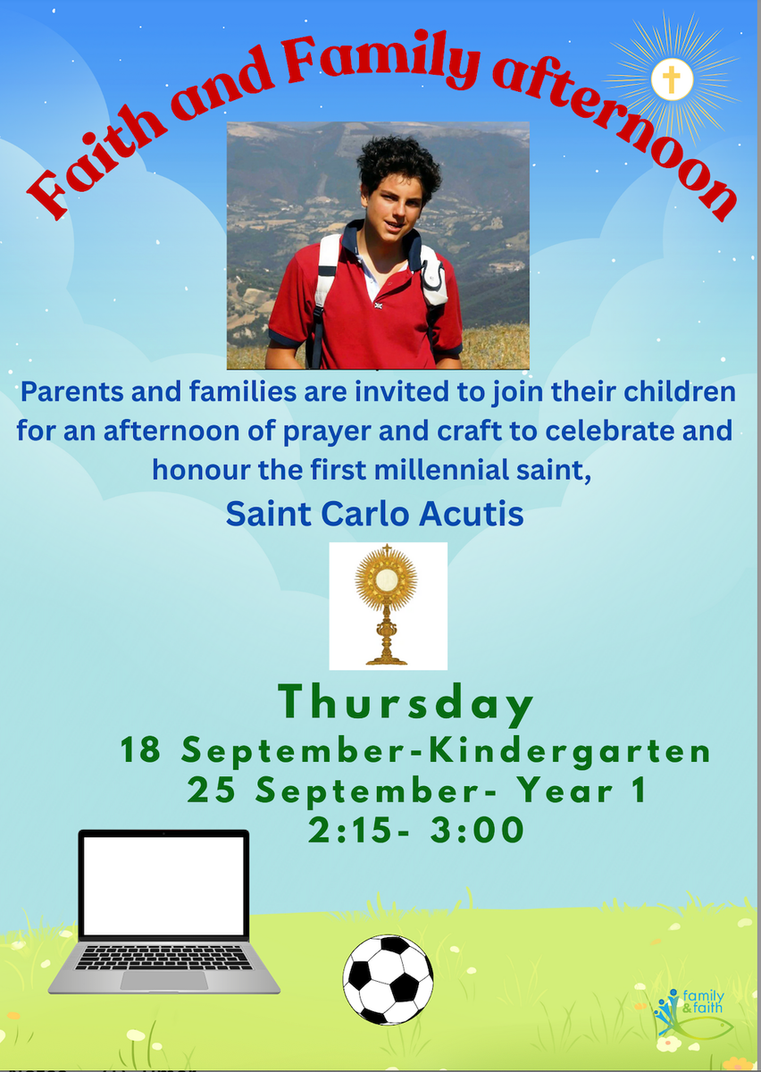 To celebrate this occasion, we will be holding a series of Faith and Family afternoons, where parents are invited to join their children for an afternoon of faith, community and craft. We will learn more about the life of St Carlo Acutis, the first millennial saint, and what his faith and example can teach us today.