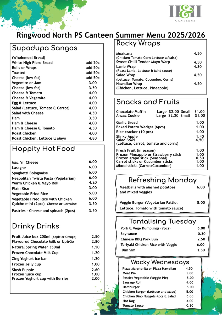 With the majority of canteen sales being completed online, we don't have a large amount of cash available to give children change. If you are giving your child cash to spend at the canteen, can we please ask that they don't have anything larger than a $10 note. Thank you for your understanding.