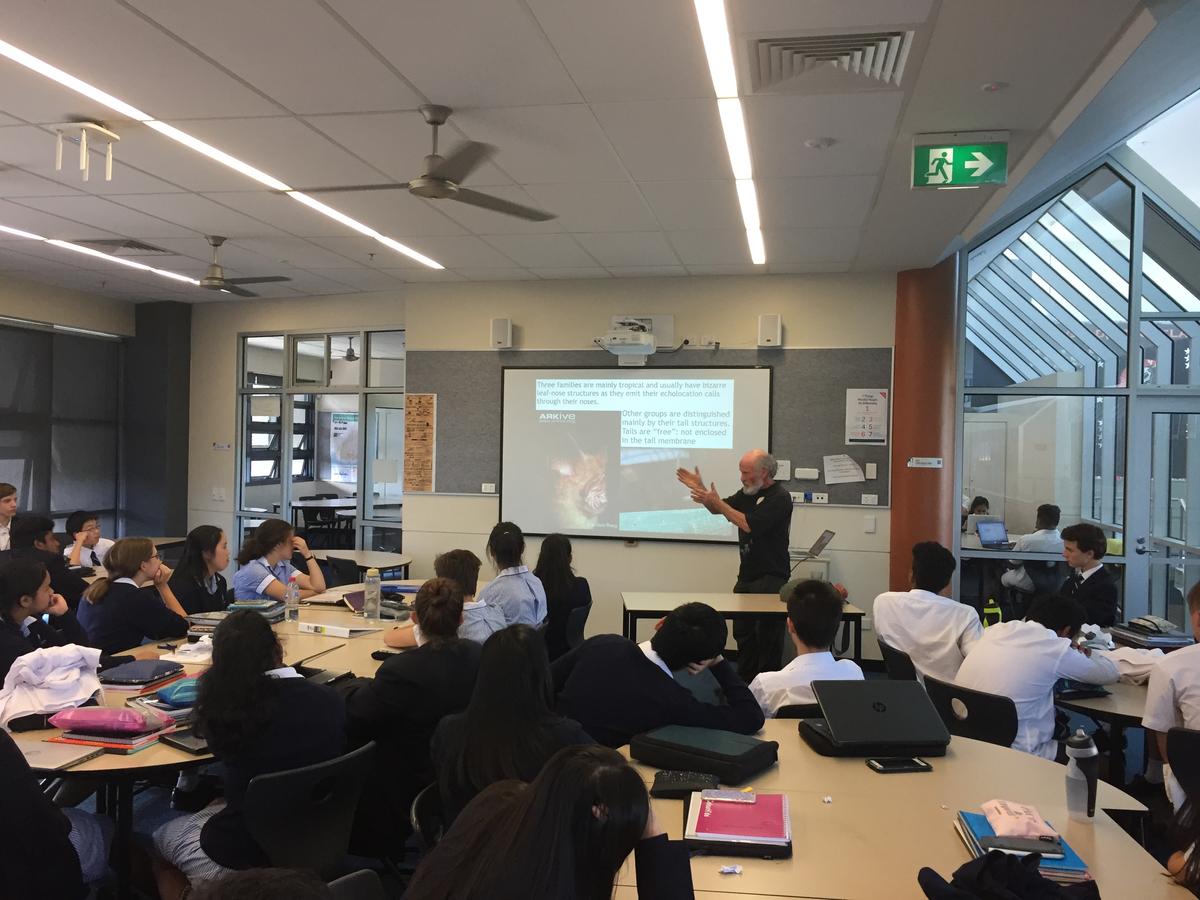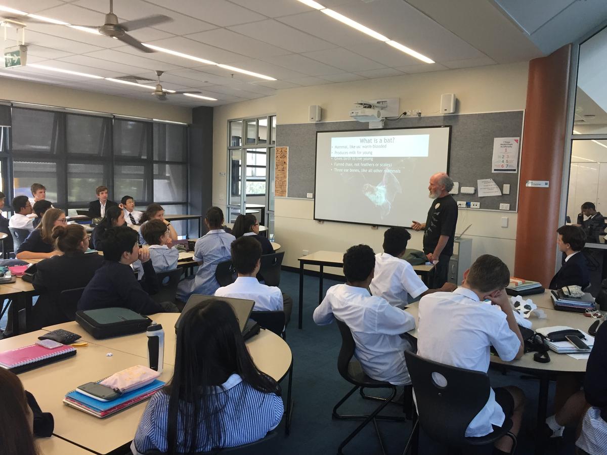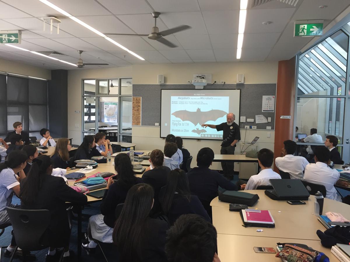Mr Bender's presentation regarding his 25-year career of researching the behaviours of micro bats engaged the class in a uniquely specific field of biology. Emphasising the similarities between micro bats and humans, and the surprising rituals in their life cycle, Robert delivered the conclusions he had made with his team about the reasons micro bats prefer some environments to others, and how practical examinations of the micro bats were conducted. Overall, we found the talk from a motivated researcher both interesting and enjoyable.
