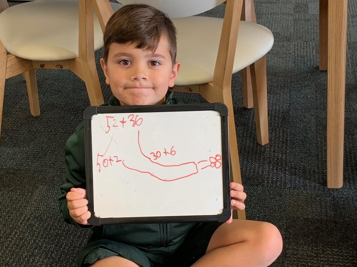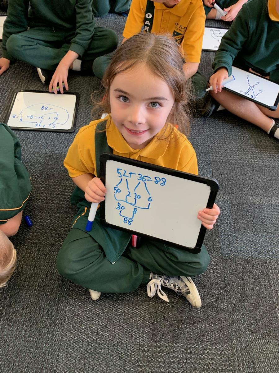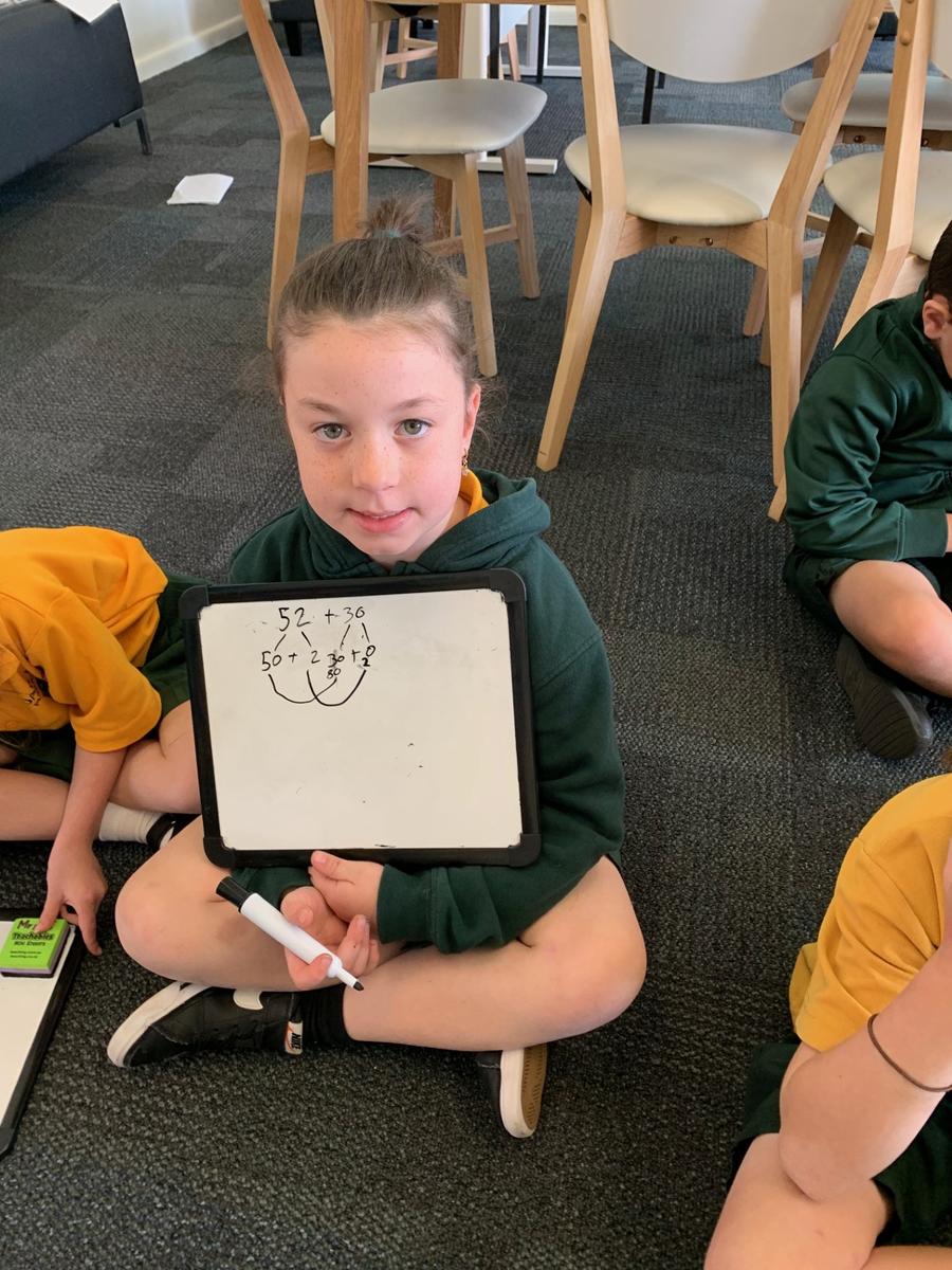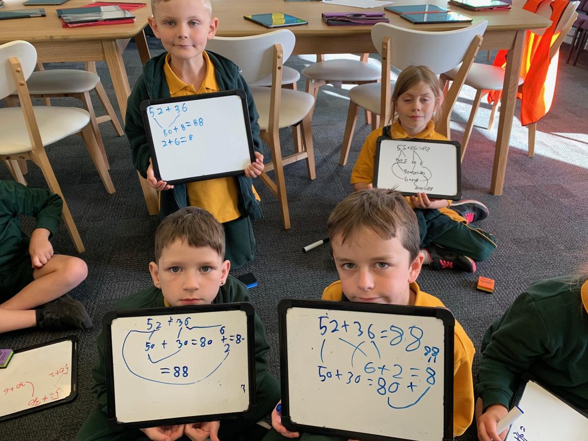 The Year 2 students are consolidating their mental strategies for addition through the use of the split, jump, bridging and compensation methods. We start our lesson with an Esti-mystery to help develop our understanding of number.