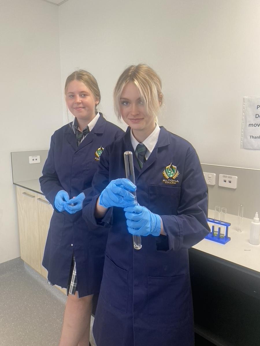 Students in Year 10 Chemistry have been learning about different kinds of reactions. Here the students were learning about mixing acids with bases forming a salt and water as well as a metal and acid forming a metal salt and hydrogen gas.