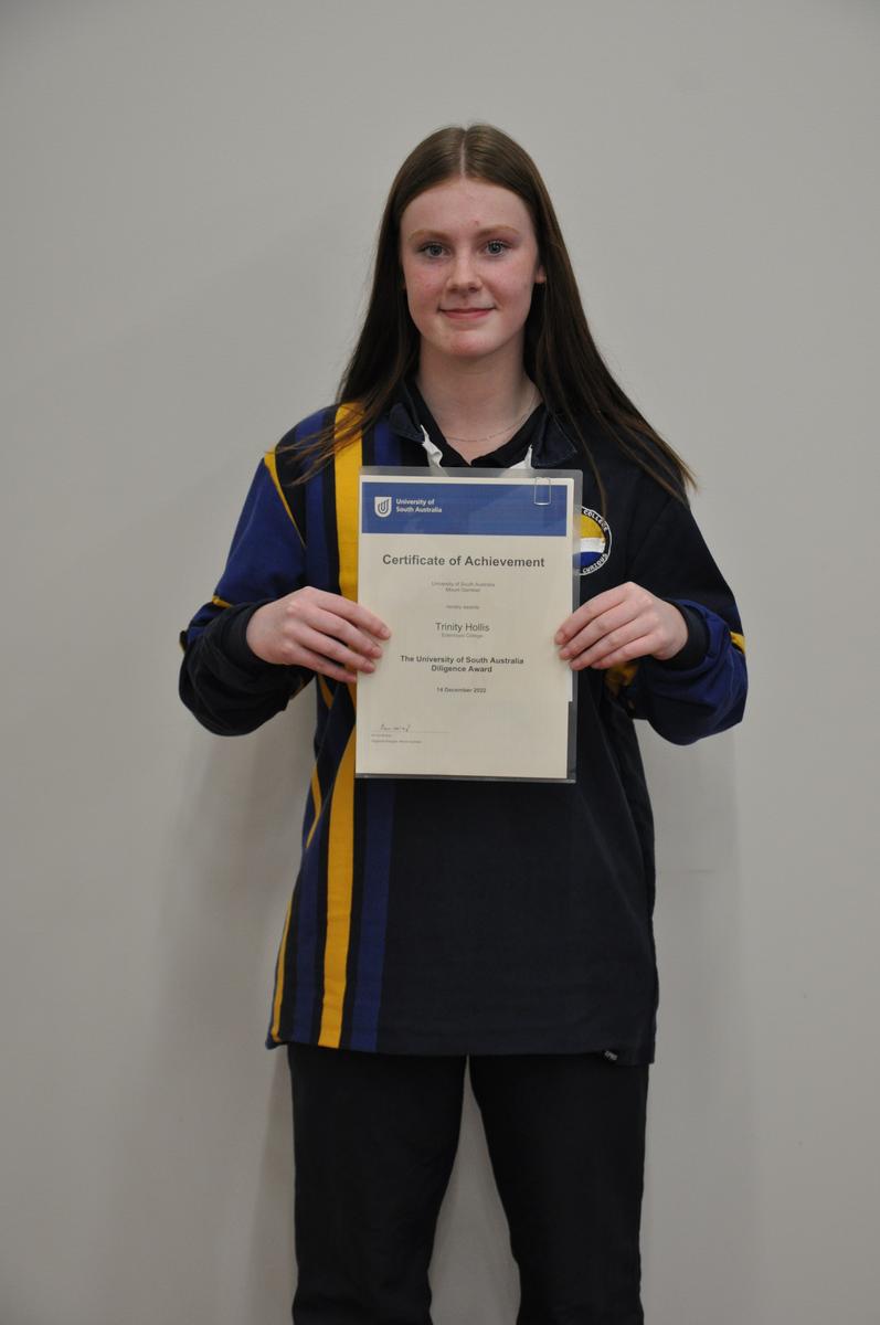 The recipient of the University of South Australia’s Diligence Award for 2022 is:- Trinity Hollis