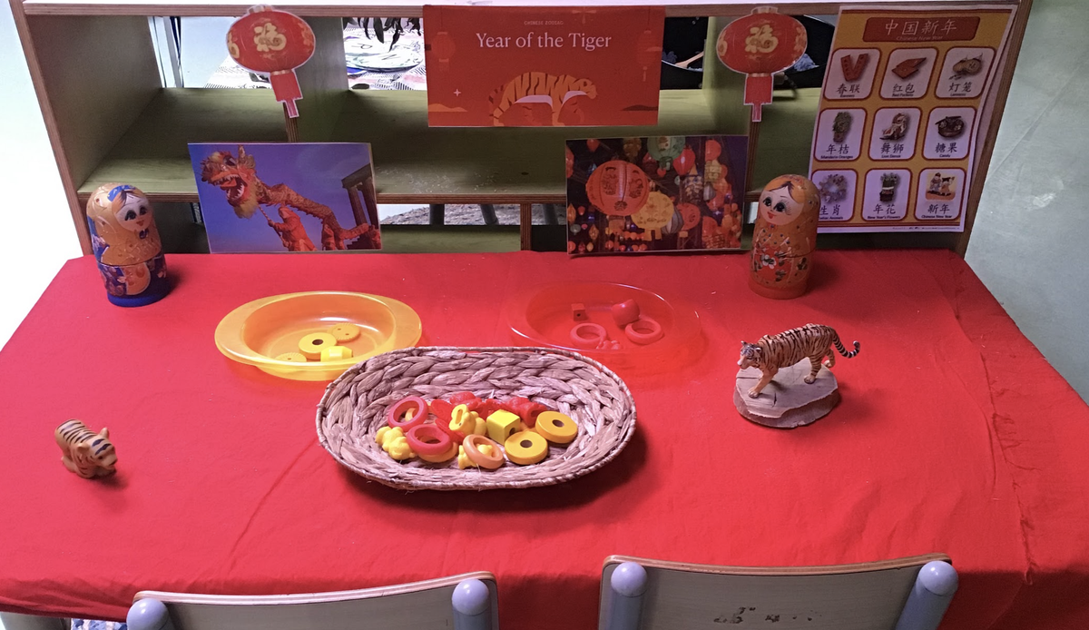 In the Forest Room we cleebrated Chinese New Year! We had some children come in thier traditonal Chinese outfits to share with all of us! We also had some pasting where the children made their very own lantern! We had some table top activites where the children could sort the red and yellow items into the correct tubs. We even got to make some yummy Pork Dumplings with Ginna! They were so yummy!