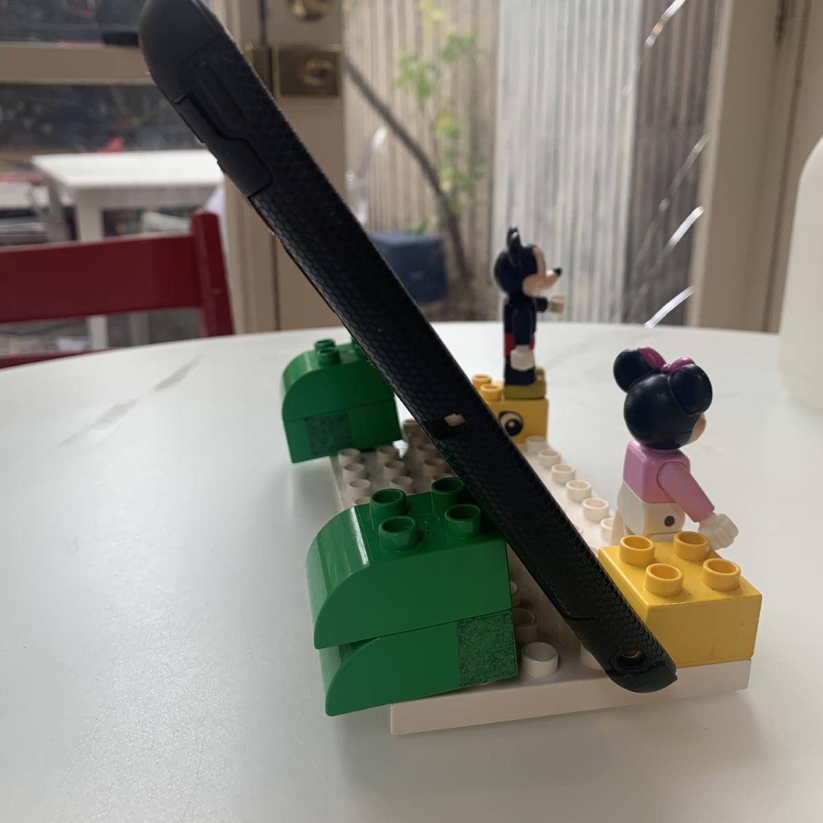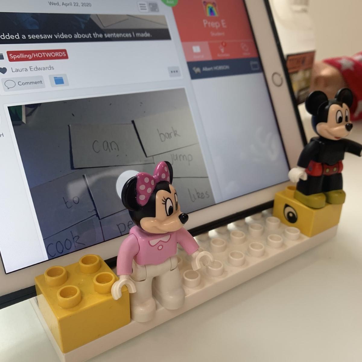 We didn’t have an iPad stand so we made one from Duplo LEGO.