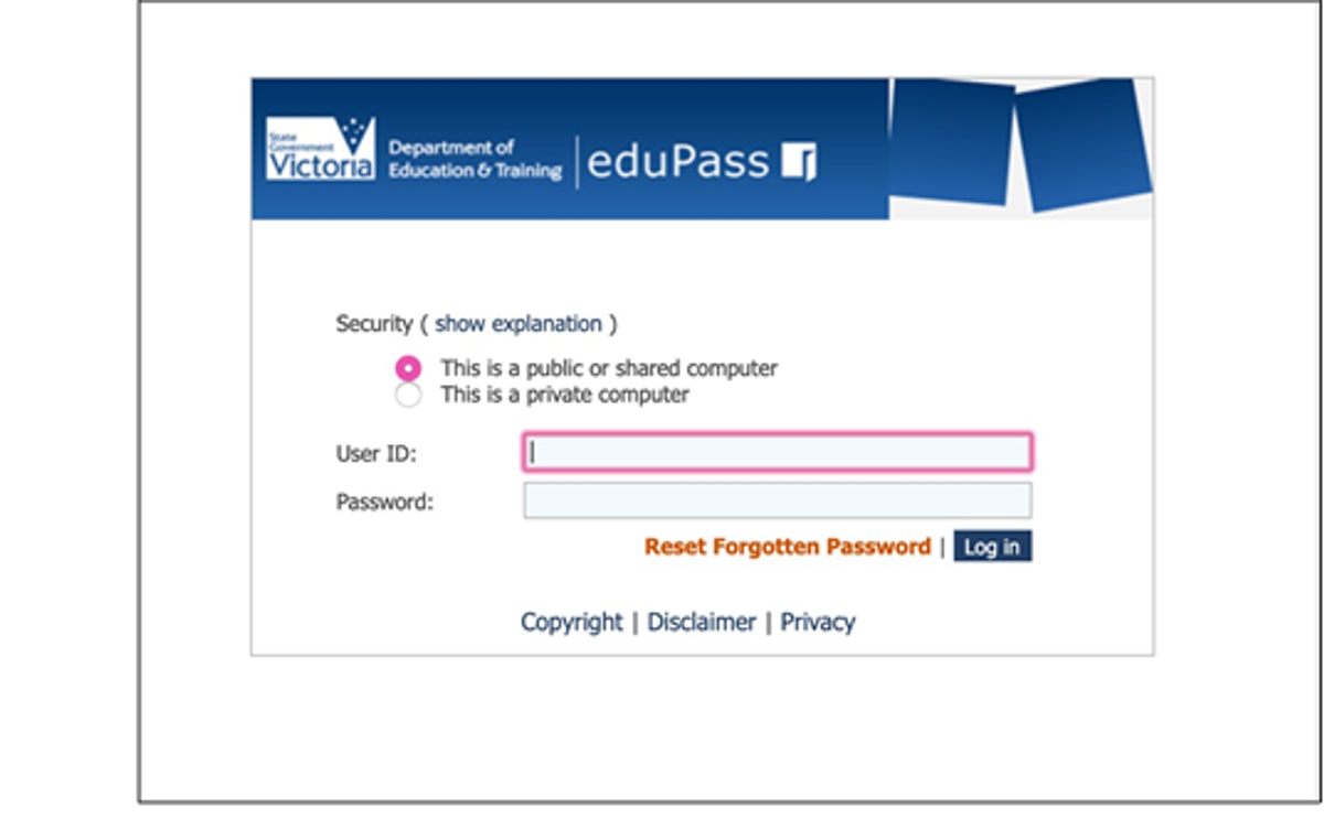 4 - Enter your child’s User ID and Password. The User ID is the first part of your child’s email (do not include @schools.vic.edu.au)