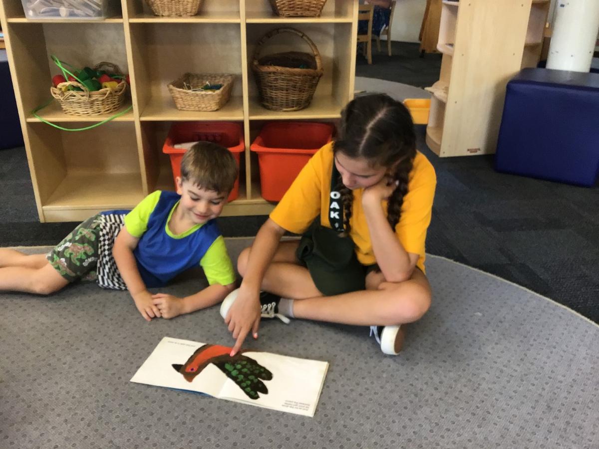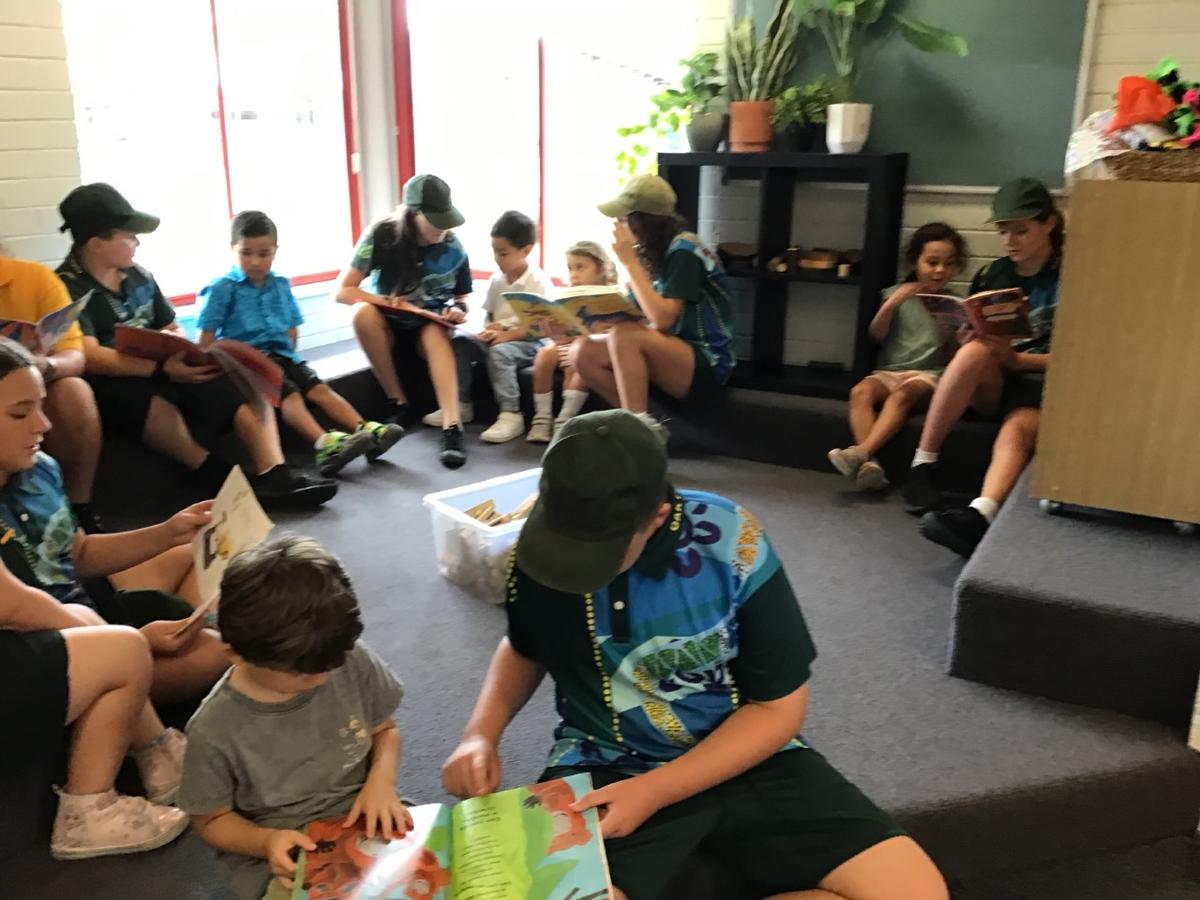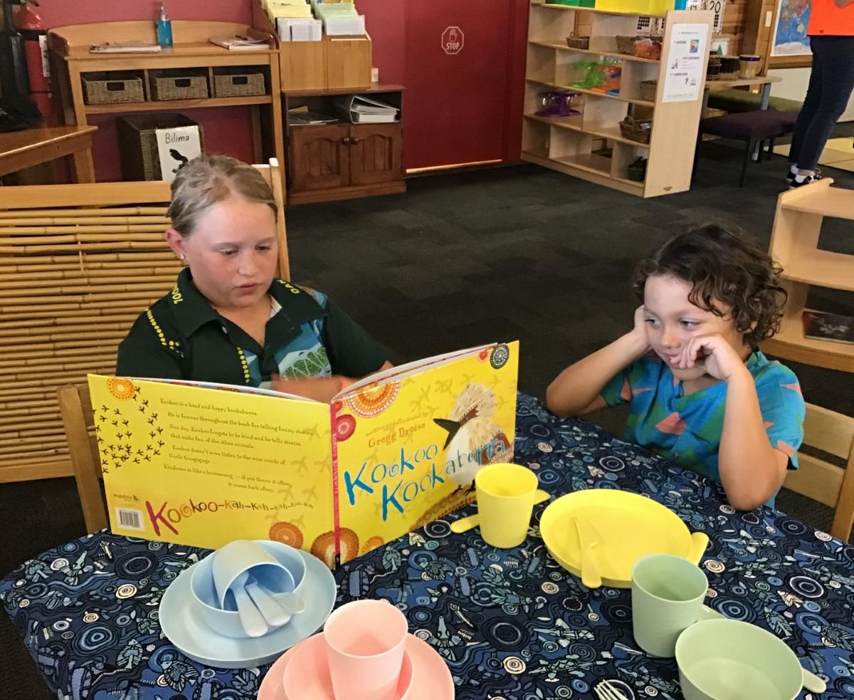 In the Preschool we start talking about the letters in the children’s names and some familiar words. Our main focus in Preschool is developing enjoyment in books. We do this by engaging the children in the story and helping them to identify with the characters. Recently in Bilima Group the children connected with Andy who was on his way to Preschool. We read our new book over two days and then we read the same book as an ebook to introduce technological literacy. The Gurawara Group were able to connect with the concept of friends being the same and different while reading Stellaluna. As this story is a longer book we used a bookmark to keep our place so that we could pick up where we left off the next day. In Preschool we immerse the children in literacy so that they are motivated to work out what letters, words and symbols mean. This is done by allowing them to have a go as best they can with simple tasks like writing in old blank diaries, playing postie or making a treasure map to start a turn taking game of treasure hunts. We link mark making to local Dharawal symbols through the use of Coomaditchie symbols and finding opportunities to refer back to this resource when outside in the sandpit or inside during grouptime or in writing corner. Also visiting the library and having our Year 6 buddies visit on Friday supports the children to start enjoying stories as well as starting to learn about letters, words and books. The tip sheets that can be found at the link below include some great ideas for all families to support young children with literacy development.