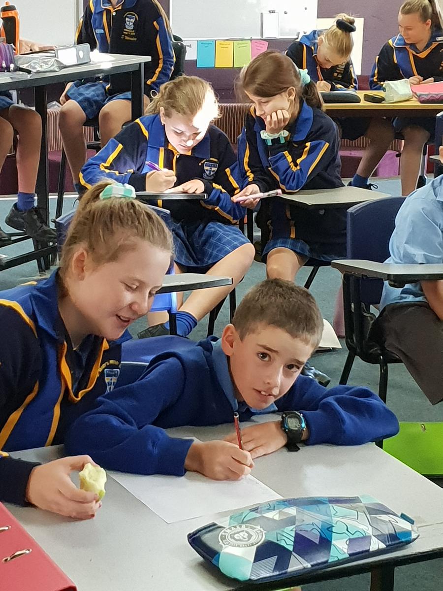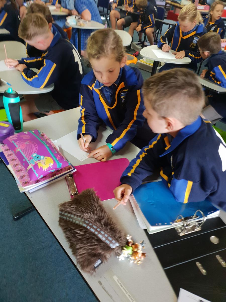 In English, we are learning how to write a story. We are reading multiple picture books in class and have already learnt about powerful orientations. We use our VCOP wall to help us with our writing and are now at the stage of learning how to write a powerful complication. When we are reading books as a class and the teacher stops, just before the complication, we have to finish it off. We are using powerful words from the class book Fox.