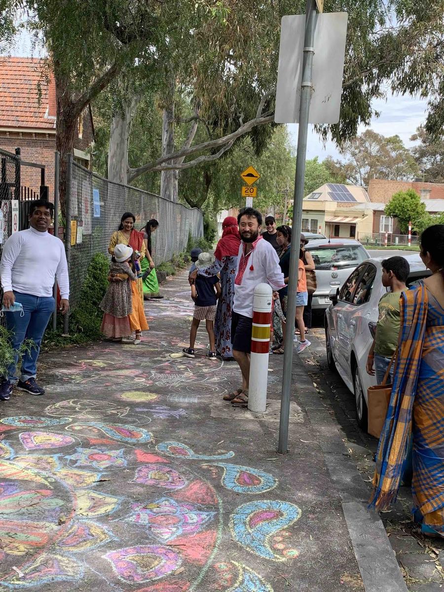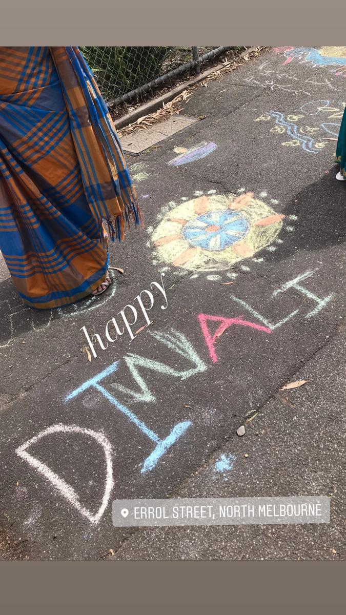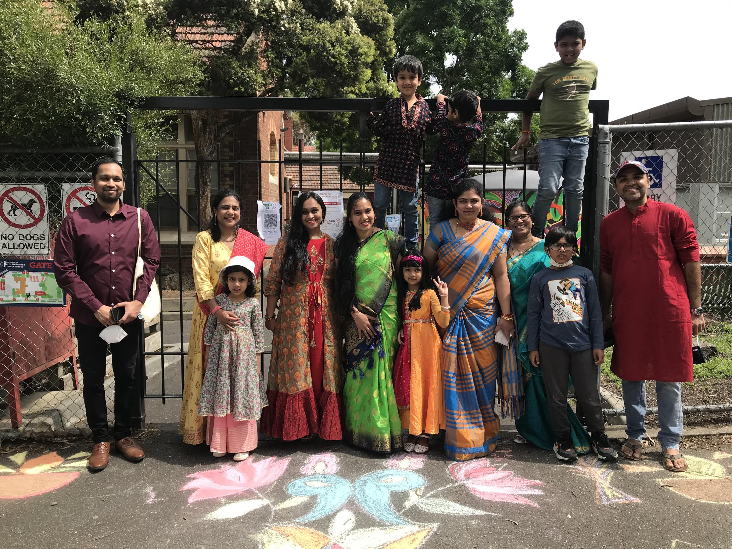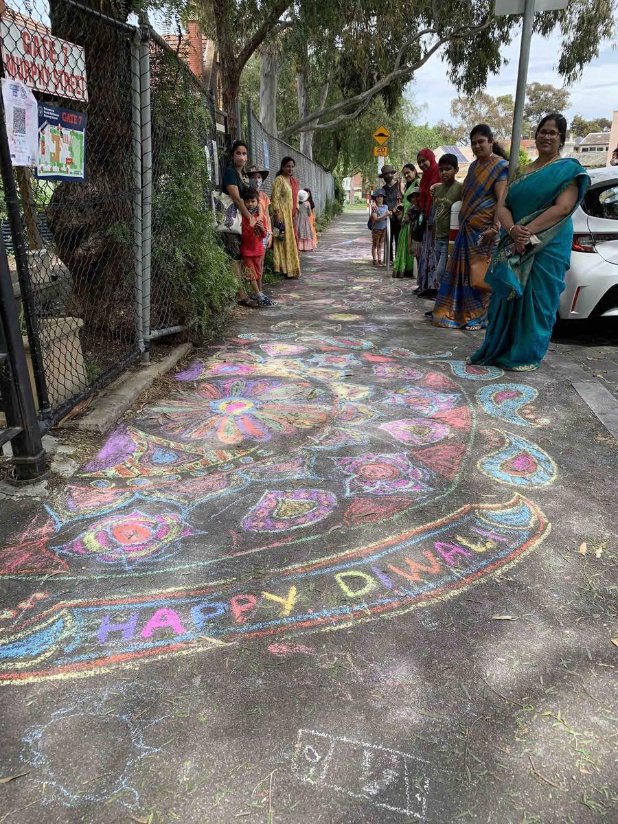 Parents & Friends met virtually and decided on an event to celebrate the end of lockdown that the community could participate in. Diwali was coming up in the calendar and after some work by Parents & Friends and Principal Sarah, it was decided to perform the event outside the school gates in small groups. The North Melbourne Police was then consulted to have a clarification of guidelines, which seemed fine with our event design.