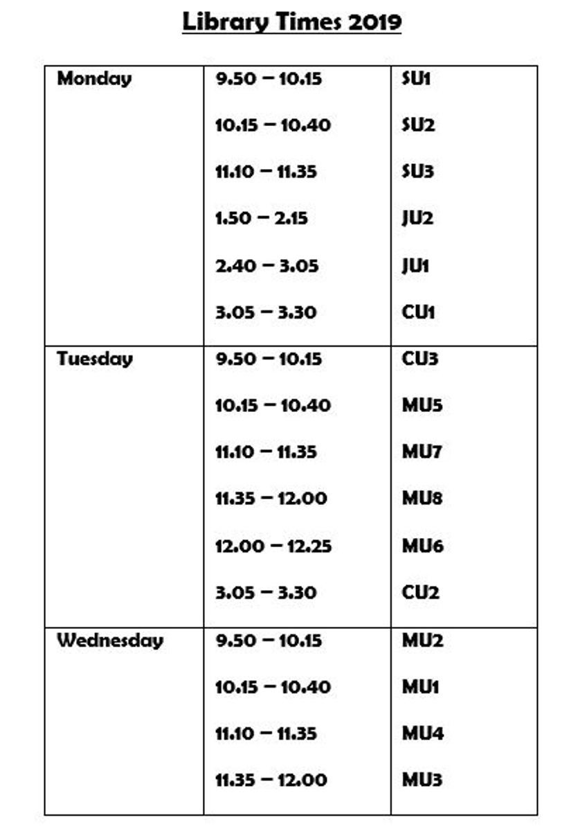 The library session times for each class is also listed so parents may help with the returning of books on allocated days. We also have a tub outside the library door so books can be returned at any time. Everyone’s help with this would be greatly appreciated.