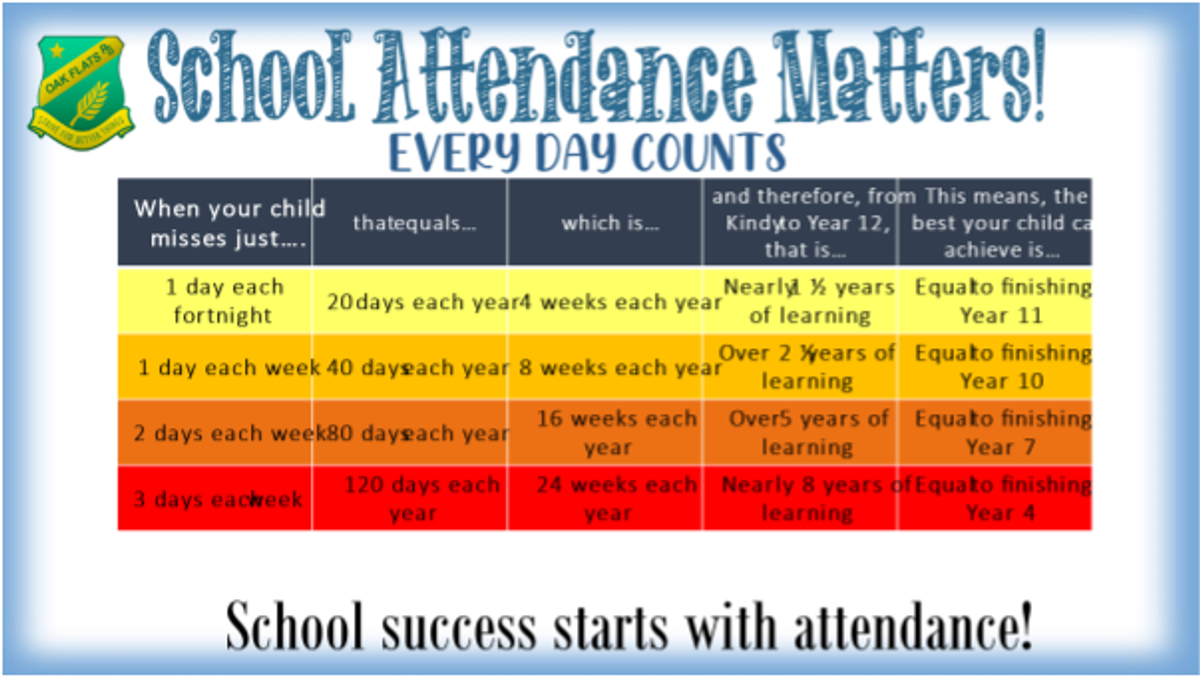 It has come to our attention that there has been an increase in the late arrival of students at school. Whilst we understand that there can be the occasional late arrival, many of these students are late every day. The school has supervision from 8:30am in the morning and the school bell rings at 8:55am for students to line up and again at 9:00am to signal the beginning of lessons. We would appreciate your support in ensuring your child arrives at school before 9:00am. Students that arrive late, must have an explanation from their parent or carer.