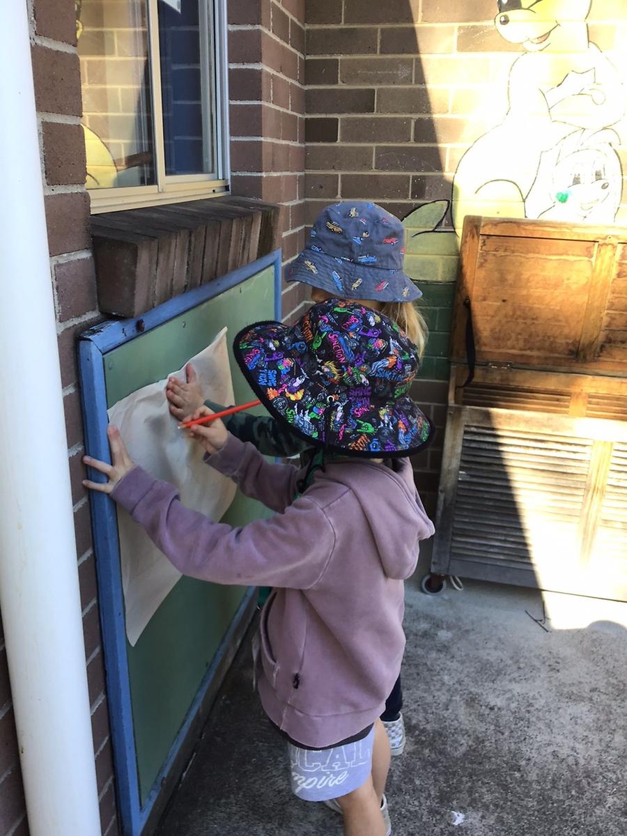 In the preschool years we use a method known as emergent literacy to support children's development of reading and writing. We are noticing that the children are showing an interest in print. Some of the children are starting to notice letters and words. All of the children can recognise their own name and are working hard to refine this skill. We use our environment as a way to introduce the beginning skills of literacy by making sure that we have signs around the room that we refer to at different times during the day. The children enjoy wearing the 'Sun Safety Champion' lanyard when it is their turn to take on this role. We talk about the days of the week, the weather and the seasons including Dharawal and European seasons. Recently some of the children have helped to make signs for our compost, chicken scraps and recycling boxes. Other children have helped to make a list of suggested sentences they would like to copy in our writing centre. As we focus on play in the preschool years we use education toys, including puzzles, books and games, to draw the children's attention to letters. This is a great opportunity to discuss letter names, letter sounds and any words that might be familiar. The first words the children are currently noticing are Mum, Dad, zoo, and stop. The children enjoy playing with the letters on the whiteboard and making up words or writing by writing letter-like marks. It is common for young children to play with words both in print and in song or by mimicking reading. Recently the children have been exploring using the paint app on the Commbox and some are showing an interest in typing their own name to help save their work. As a team we are always wondering what the children will surprise us with next!