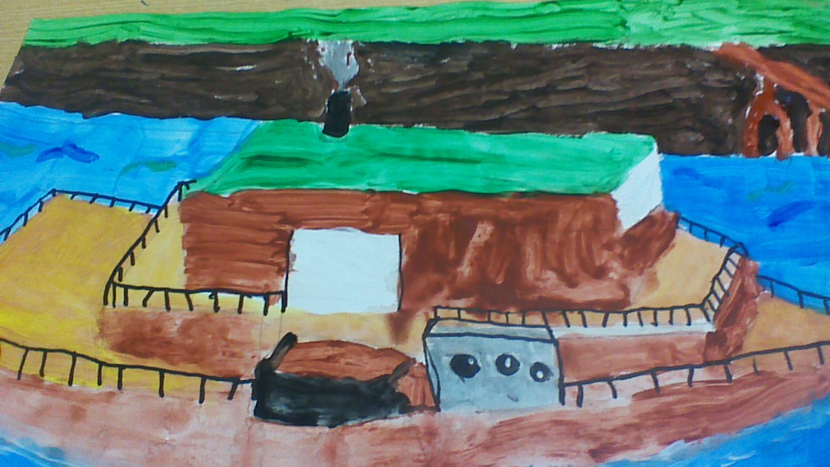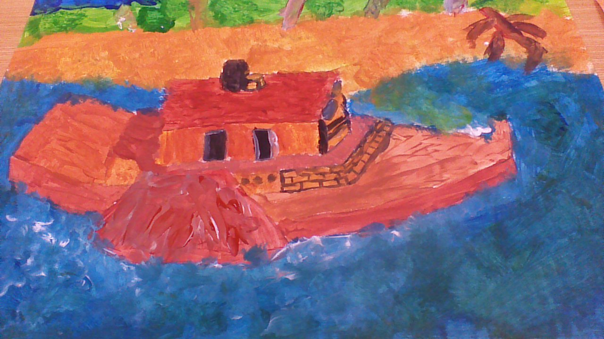 These photos show the students creating a painting of a Paddle Steamer along the Murray River.