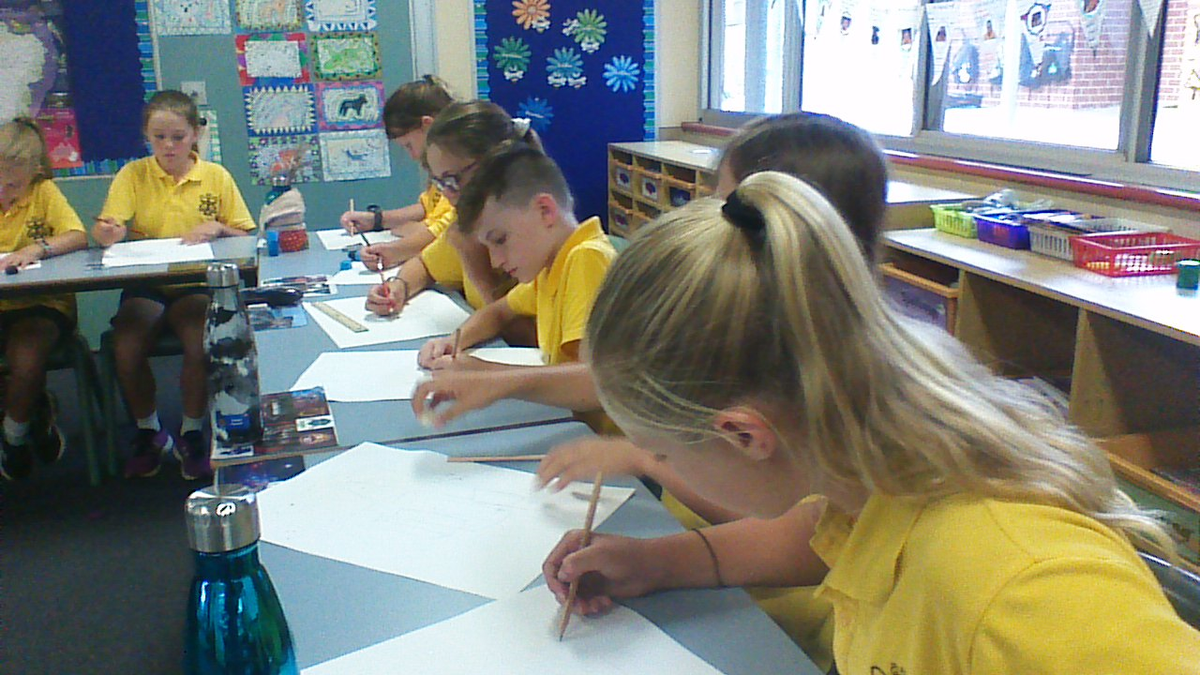 Students have applied themselves to producing amazing animal sketches, Aboriginal inspired dot paintings and a portrait of the main character in the text, John Jagamarra.