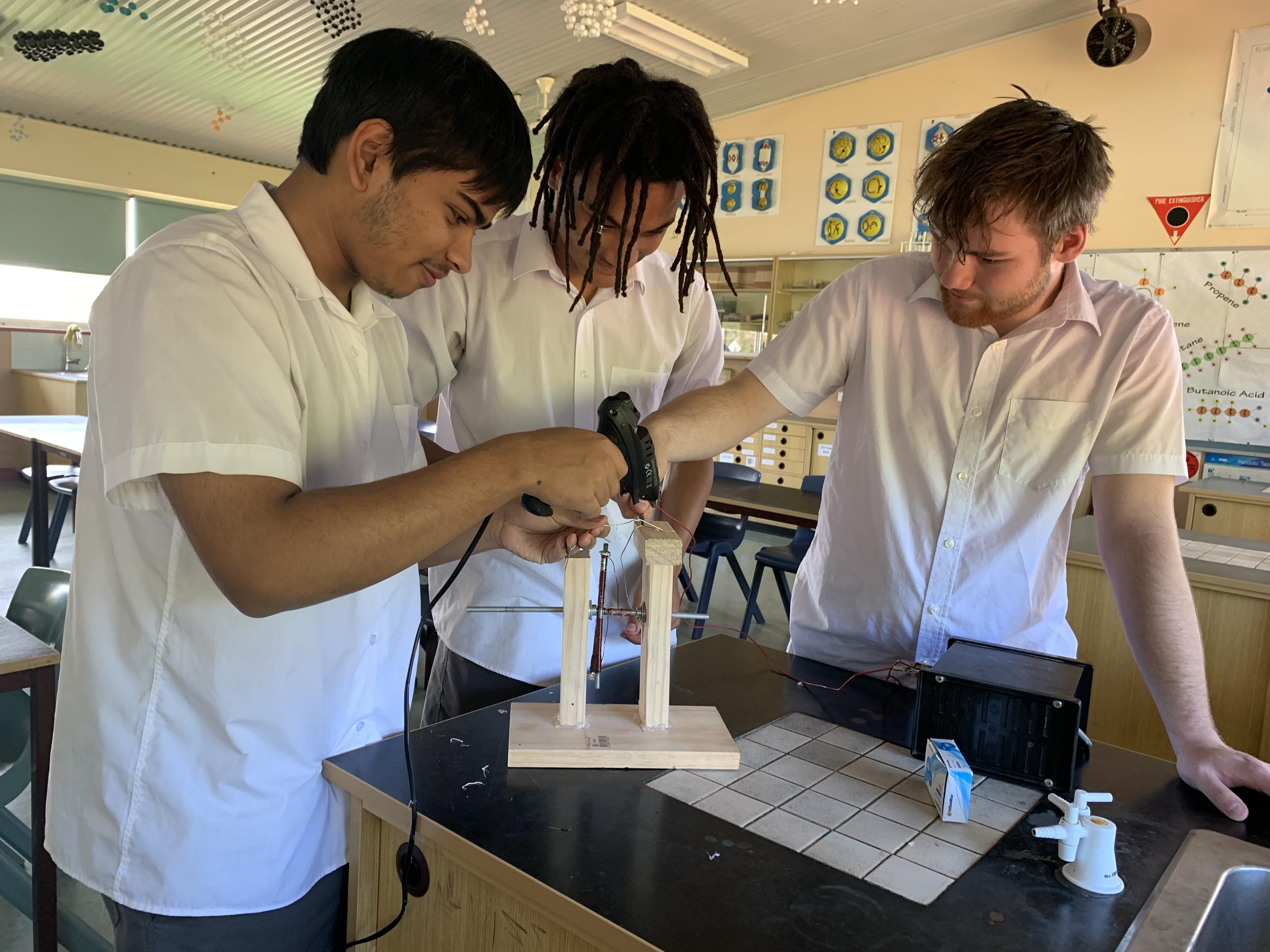 Year 11 and 12 Physics students are having lot of hands-on experience in class, as part of their depth study analysis. Year 11 students have designed, built and modified a speed racer that can travel in a straight line. Once they were successful in this process, the next step was to make an even faster speed racer. Students worked together as a team of three and came up with two speed racers of varying design. Year 12 students are in the process of building a DC Motor. They have come up with a design, however they faced a challenge to make it spin for a while. Students should be commended for their engagement with the investigation and how they are thinking about refining and redesigning their chosen procedure. They also learnt that unexpected results are to be welcomed to refine methodologies and to generate further investigation, which is a key process of learning the concept in Science.
