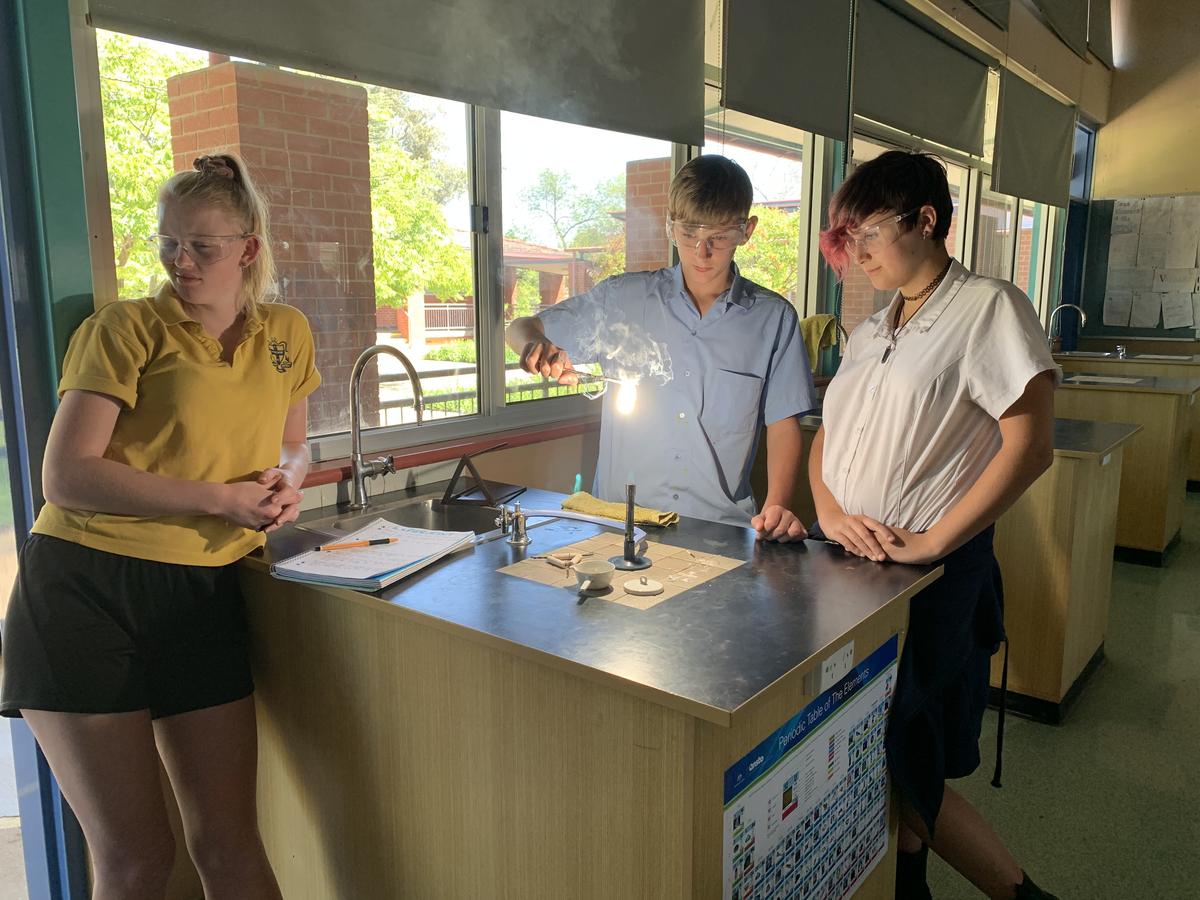 Year 8M and Year 10J students are learning about chemical structure this term. Students are enjoying conducting experiments with various chemicals and metals. These photos show Year 10 students having lots of fun learning how Magnesium Metal reacts with Oxygen. Year9J students are learning about electricity and their application in the real world.