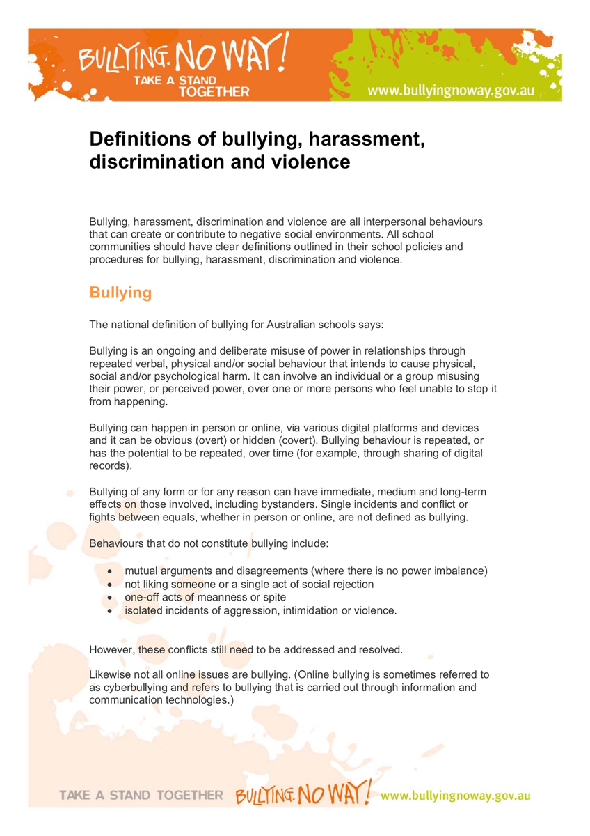 For facts about bullying as well as information about the National Day of Action Against Bullying please see the fact sheets attached below and/or go to www.bullyingnoway.vic.gov.au.