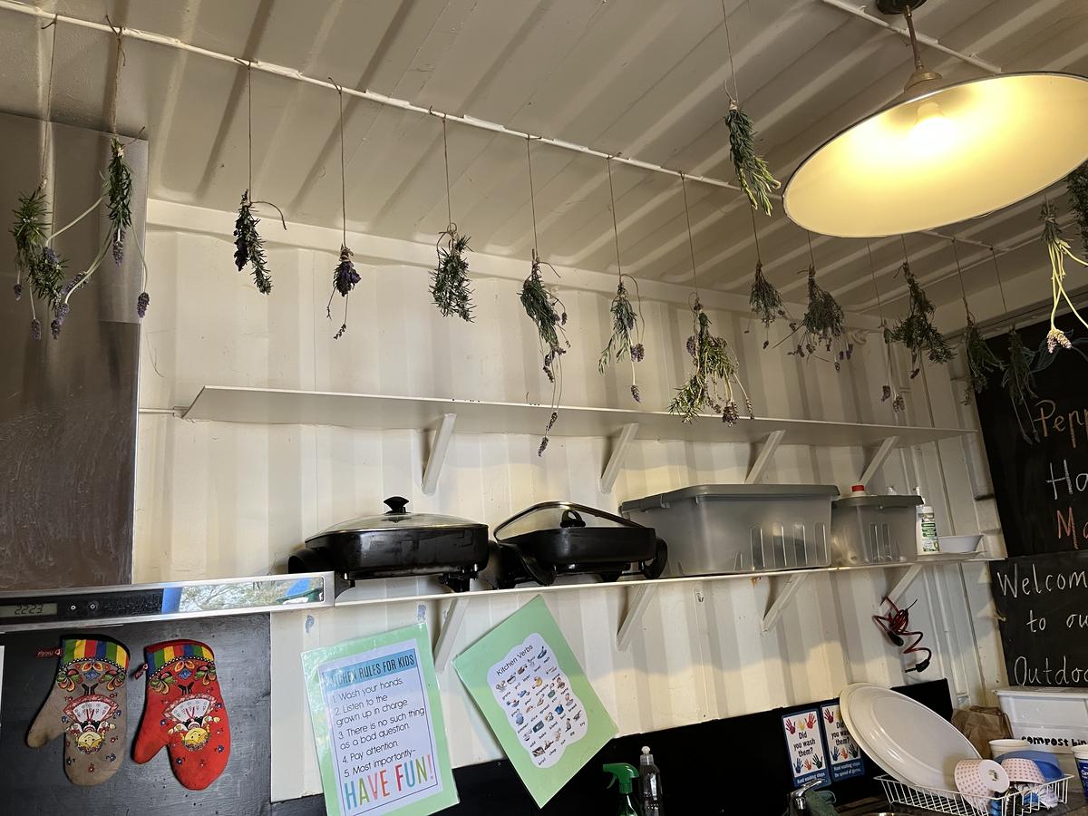 They framed their flower prints from last week and created beautiful pictures to display in our Art Show. We also bunched the rosemary and lavender and hung it in the outdoor kitchen where it will dry out over the next few weeks. Then we will gather the dried herbs and place them in a container in preparation for making scented sachets.