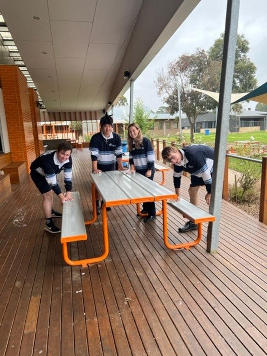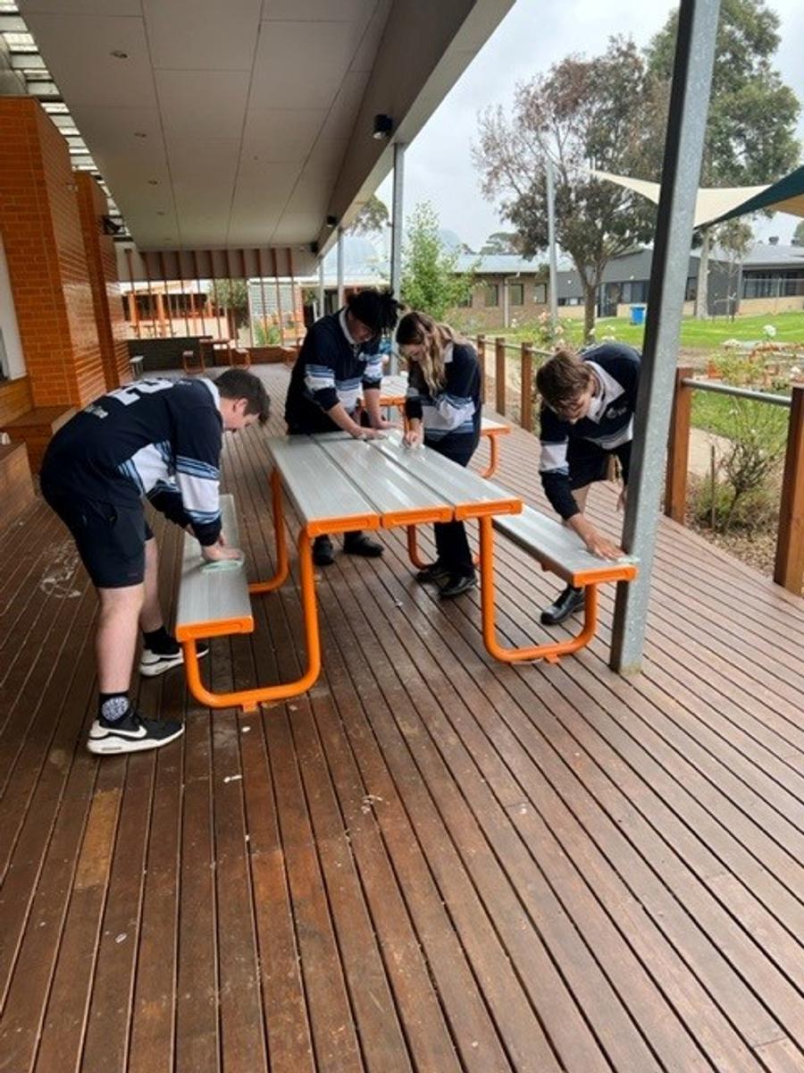 Thank you Bree, James, Vaughn and Callum for cleaning all the outside tables and chairs around the Malgobila Building. It looks great!