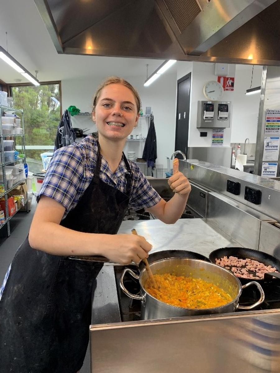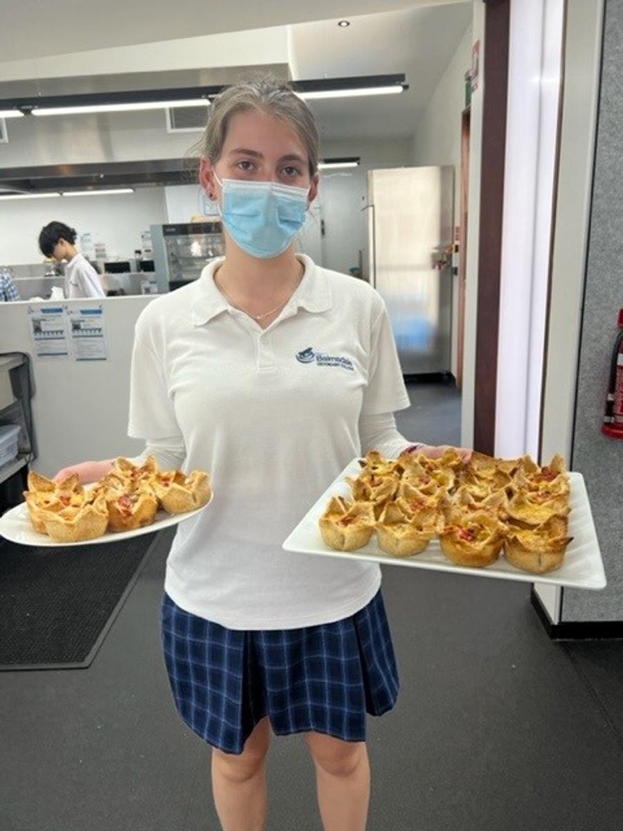 In our Year 10 Food Choices class students focus on nutrition and eating healthily for the family. Last week the students created and designed an individual dish that would suit a buffet lunch, it was a Master Chef Competition and Elly Forrester won with a wonderful butter chicken, rice and naan meal.