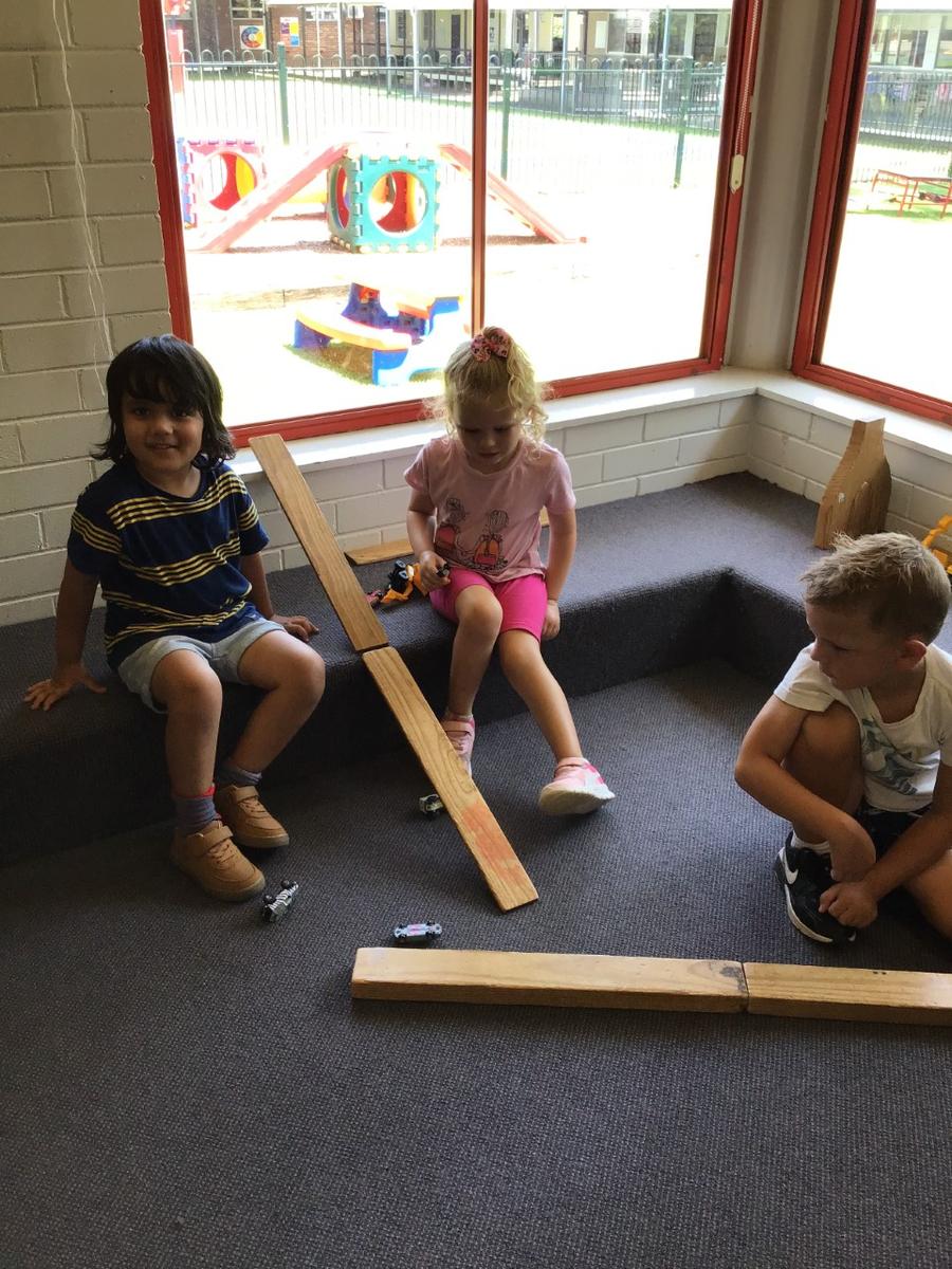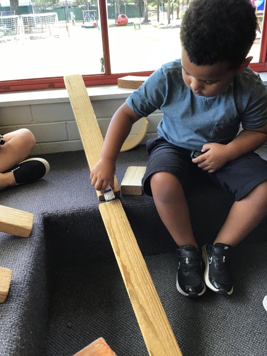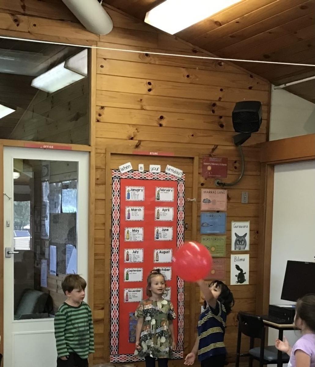 Several basic science elements have been a source of learning in recent weeks at Oak Flats Public School Preschool. Our little scientists have been problem solving, predicting, testing, hypothesising, and describing findings during our indoor and outdoor play sessions. One particular area of interest has been 'keepie-uppie' with a balloon. This game was played on our meeting mat, below the fan. It was requested by some children that the fan was turned off which we did, just to be sure it didn't pop! The next day our trusty Miss Nicole, suggested we start hypothesising what could happen if we left the fan on. Several children suggested that the fan would pop the balloon, however others said that the air from the fan would push it away. We ran some experiments which proved that the fan pushes the air down. Everyone's faces showed relief that the balloon would not pop - until .... one big ace hit caused the balloon to ricochet off a picture wire and head straight for the fan! Luckily the balloon bounced off and sent a ripple of excitement amongst the children. One little scientist exclaimed that "the fan had a turn!" while another proved that the fan did hit the balloon by pointing out the mark on the side. This event occurred at the end of the week and was a source of conversation for the children. It looks like we will be working on force and motion next!