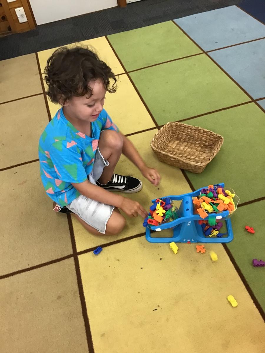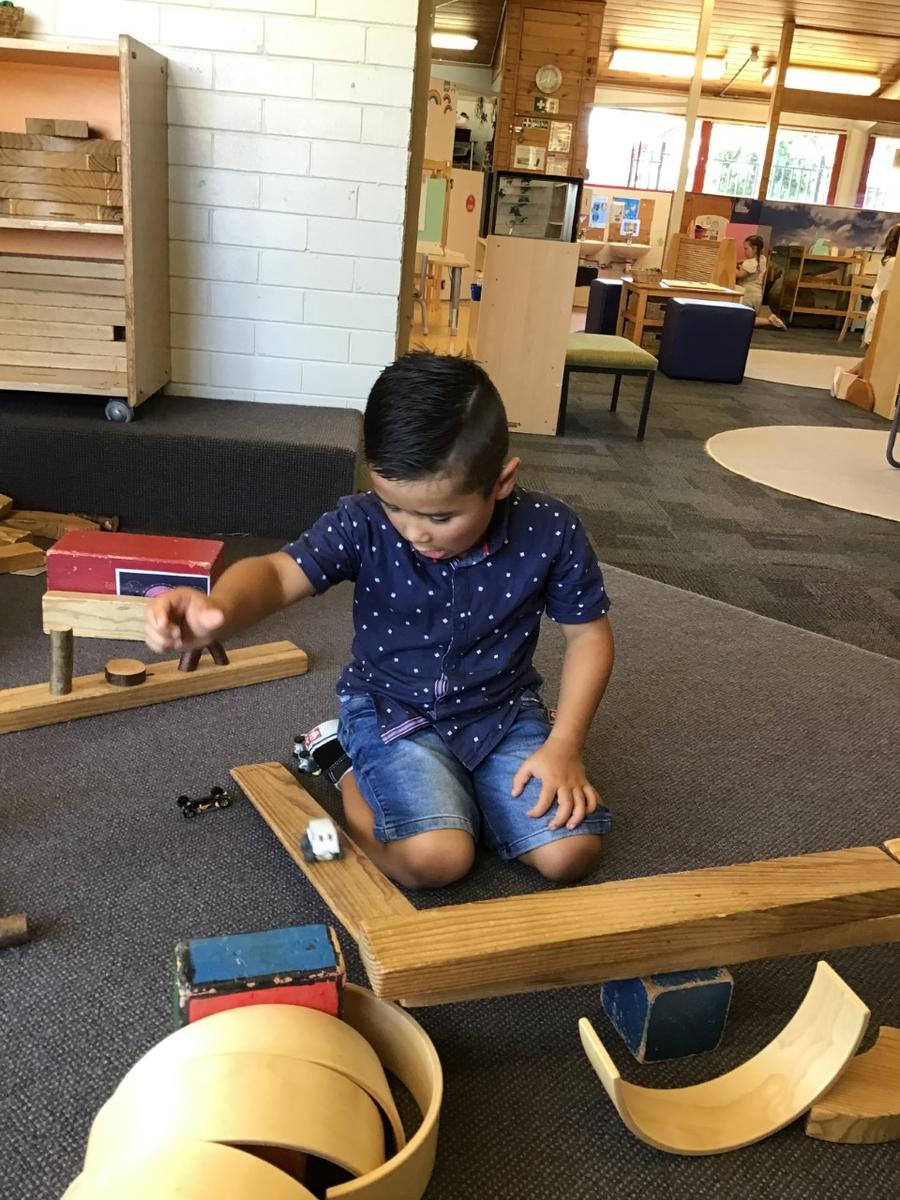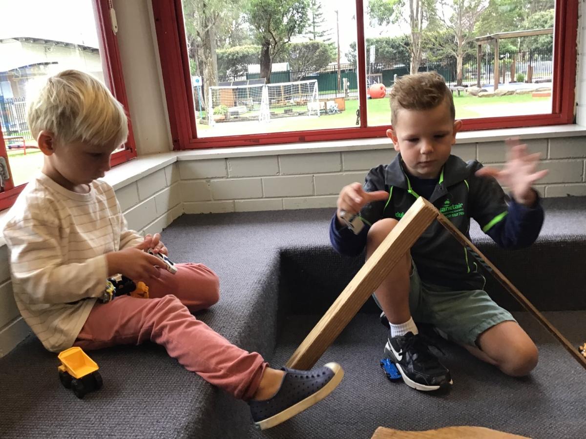 Several basic science elements have been a source of learning in recent weeks at Oak Flats Public School Preschool. Our little scientists have been problem solving, predicting, testing, hypothesising, and describing findings during our indoor and outdoor play sessions. One particular area of interest has been 'keepie-uppie' with a balloon. This game was played on our meeting mat, below the fan. It was requested by some children that the fan was turned off which we did, just to be sure it didn't pop! The next day our trusty Miss Nicole, suggested we start hypothesising what could happen if we left the fan on. Several children suggested that the fan would pop the balloon, however others said that the air from the fan would push it away. We ran some experiments which proved that the fan pushes the air down. Everyone's faces showed relief that the balloon would not pop - until .... one big ace hit caused the balloon to ricochet off a picture wire and head straight for the fan! Luckily the balloon bounced off and sent a ripple of excitement amongst the children. One little scientist exclaimed that "the fan had a turn!" while another proved that the fan did hit the balloon by pointing out the mark on the side. This event occurred at the end of the week and was a source of conversation for the children. It looks like we will be working on force and motion next!