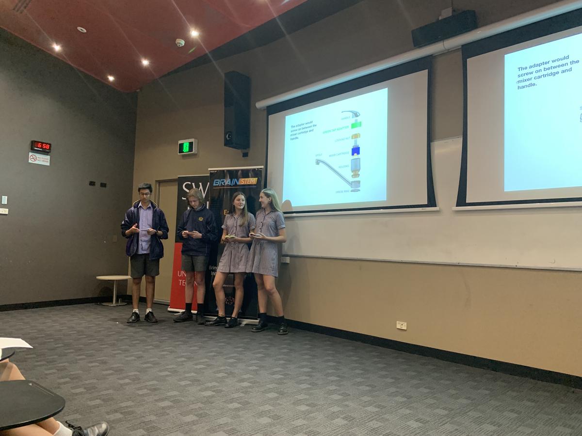 BrainSTEM gave us the chance to work and be mentored by an expert in a STEM field. The process involved researching, designing and developing a STEM product innovation for a specific topic over 12 weeks. Each week we would have meetings with our mentor at Swinburne University. It was really interesting to visit the Uni every week and see what goes on. Our team’s mentor was Dr. Charlie Ranscombe, who is an industrial designer and a product design engineer. He selected our challenge topic ‘water saving’ and guided us through our process. Charlie was very encouraging and taught us new ways of seeing things.