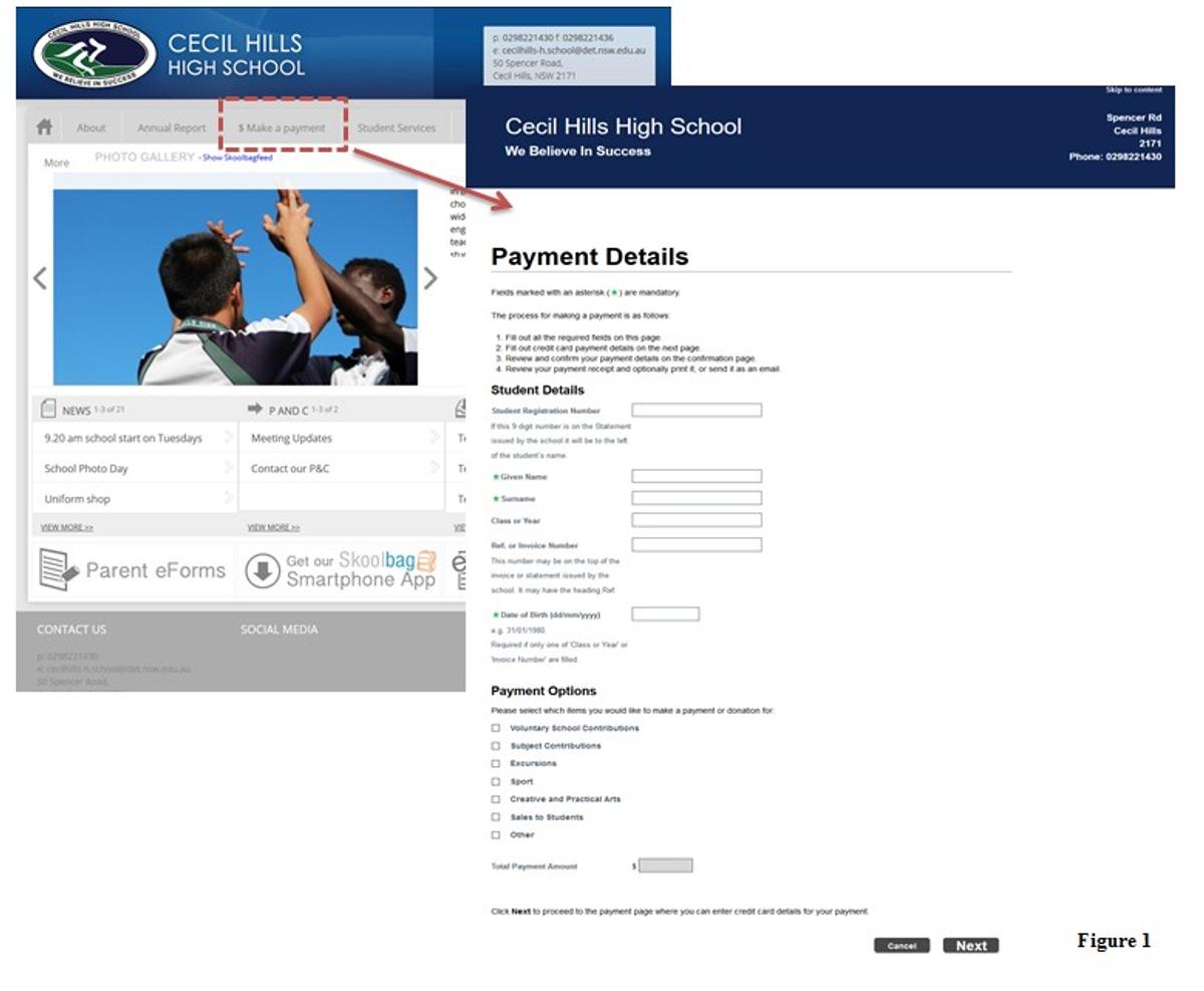 Online payments can be completed via the school’s website to make it easier for you to pay for school related payments. The payment page is accessed from the front page of the school's website www.cecilhillshigh.nsw.edu.au/.