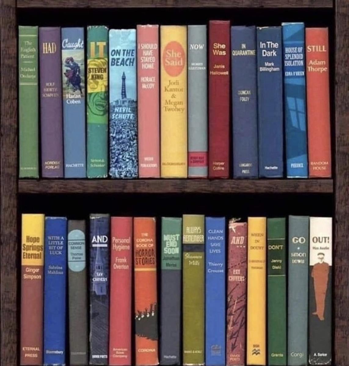 Just a shelf of books? Take a closer look.... An amazing message on the spines!