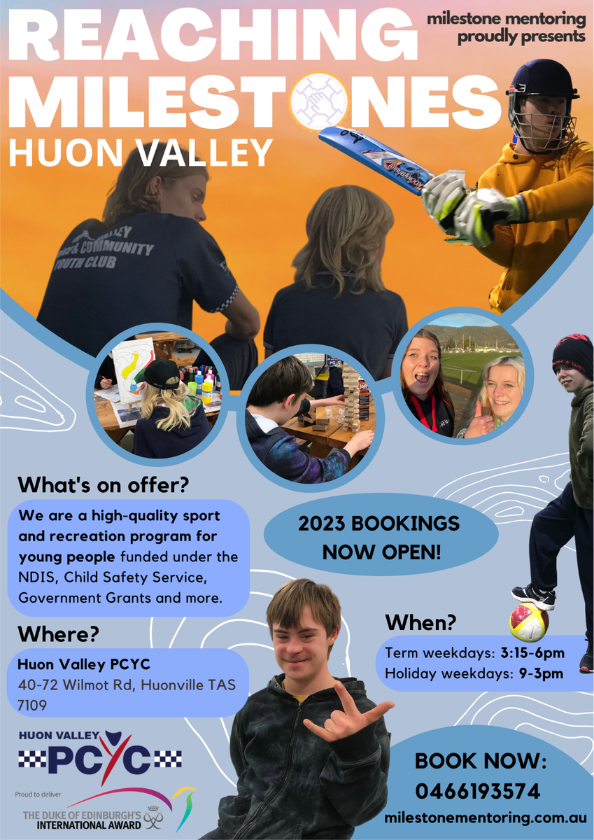 Reaching Milestones is a sport and recreation program for young people funded under the NDIS, Child Safety Services, and Government Grants. We currently run an after-school program in the Huon Valley, at the PCYC.