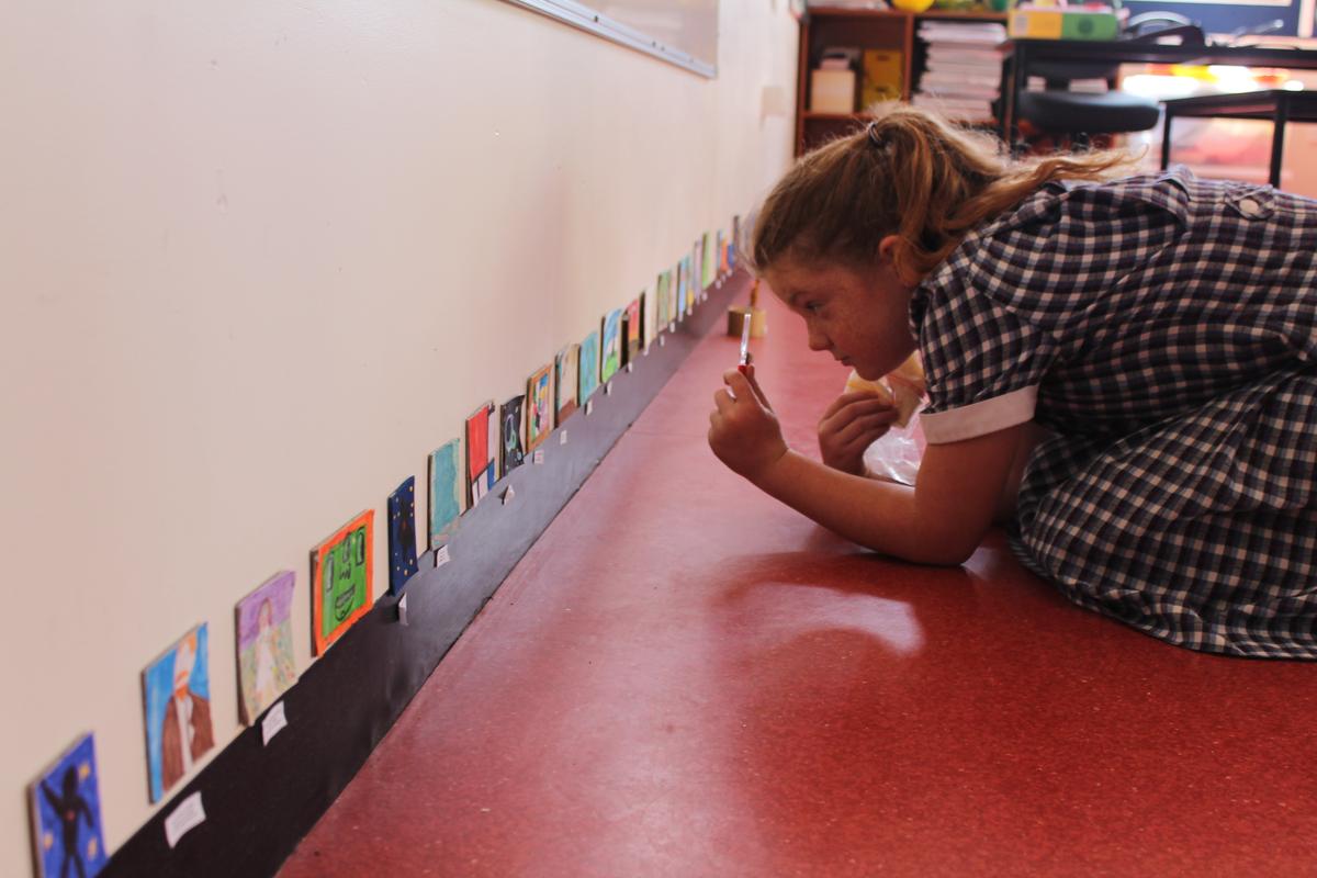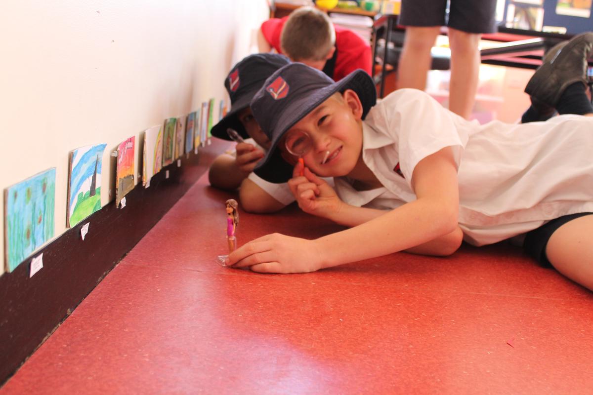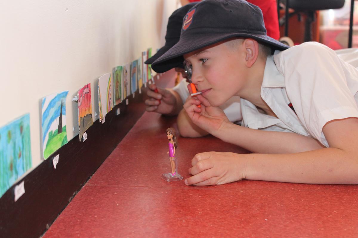 Students were taken on a TINY journey through art history at lunchtime last week. Visitors to the exhibition crawled along with their magnifying glasses to learn about some of the world’s most famous artworks. These giants of the art world are not on loan from the world’s greatest art museums but have been created in miniature form by Year 5 Visual Arts students who spent last term investigating the role of museums and studying the work of a notable artist in order to create their own exhibition of mini replicas!