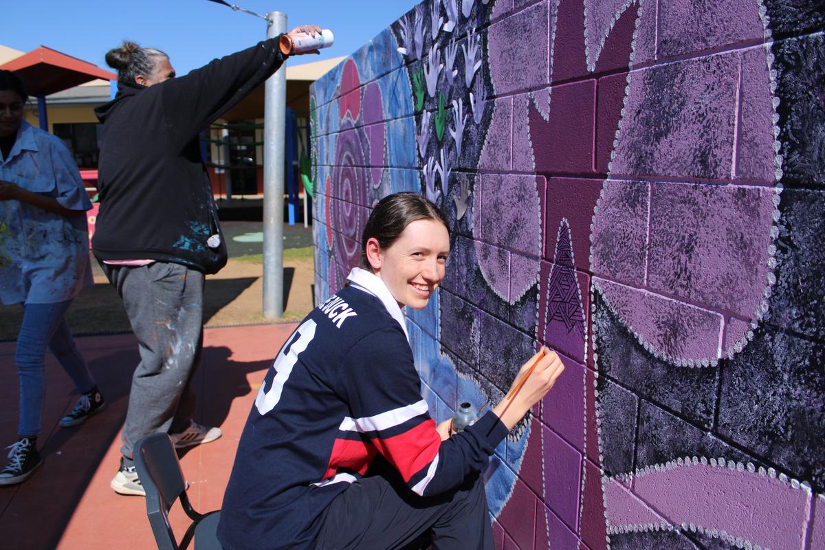 During Term 3, local artist Neva Atkinson, a Wollithican woman of the Bangerang people, alongside some of our students painted a mural within the primary school area.