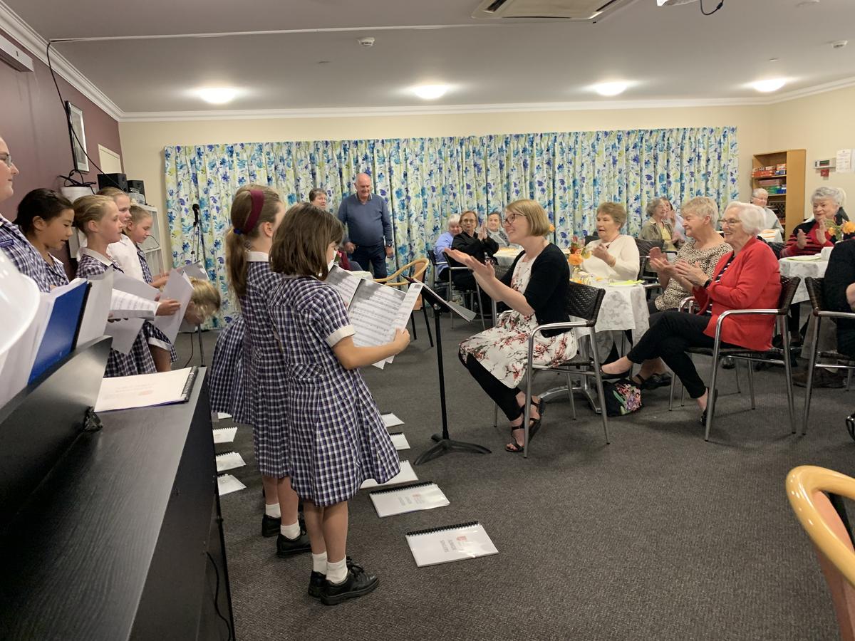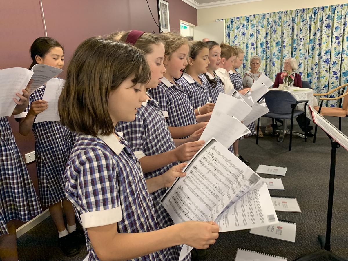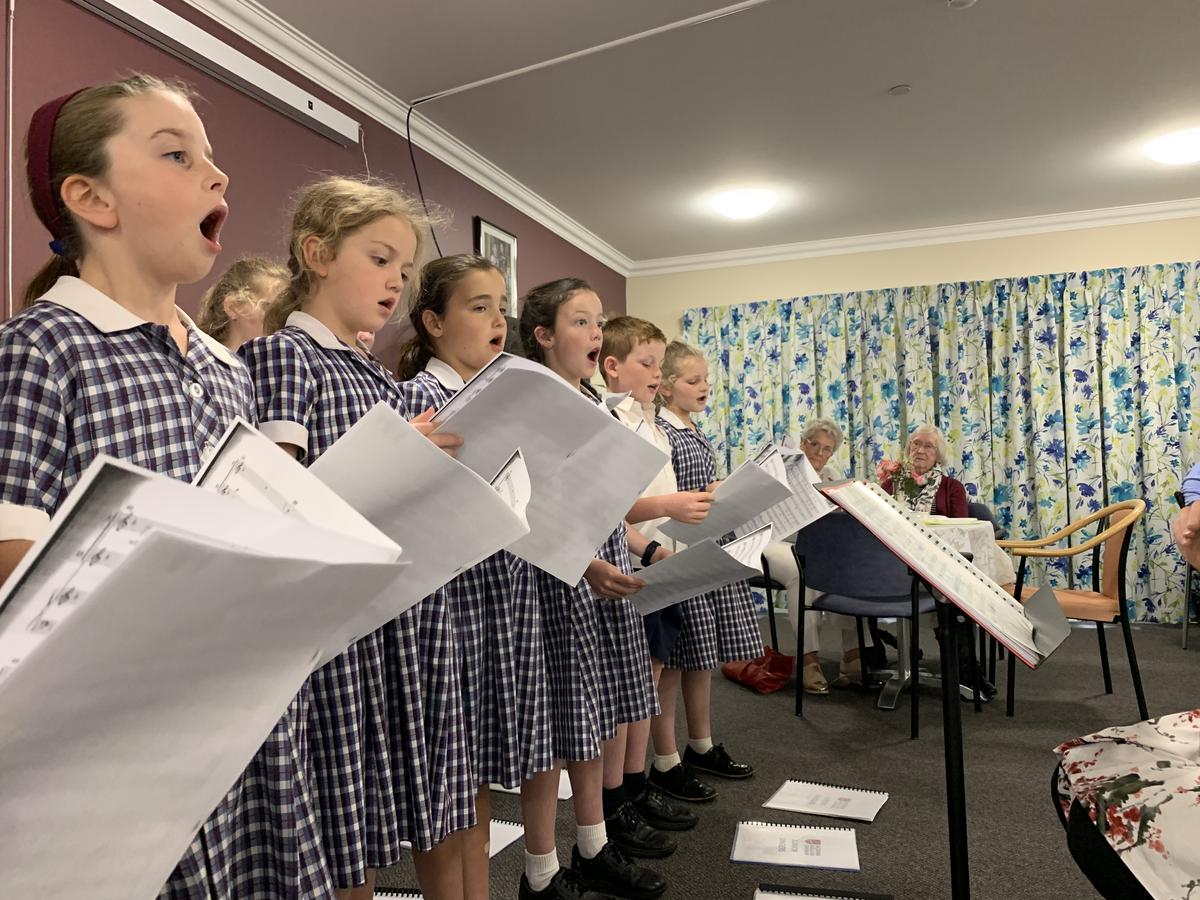 On Wednesday afternoon, our Primary vocal ensemble Jr Singers, visited Southern Cross to perform for the residents and as part of a fundraising event Southern Cross were hosting.