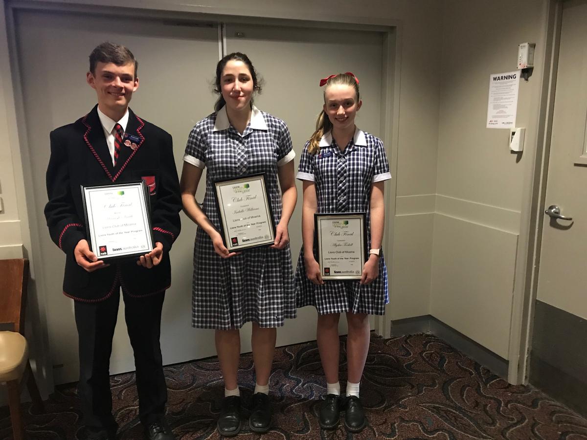 Three students from Moama Anglican Grammar competed at the Moama Lions Youth of the Year Competition, with the interview being held on Sunday 13 October and the prepared speeches being delivered on the evening of Tuesday 15 October at the Moama RSL.