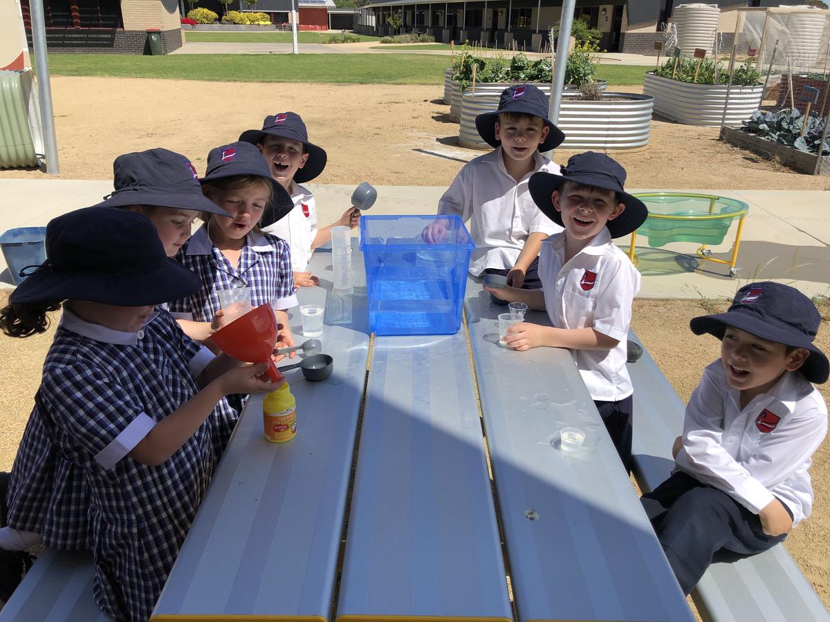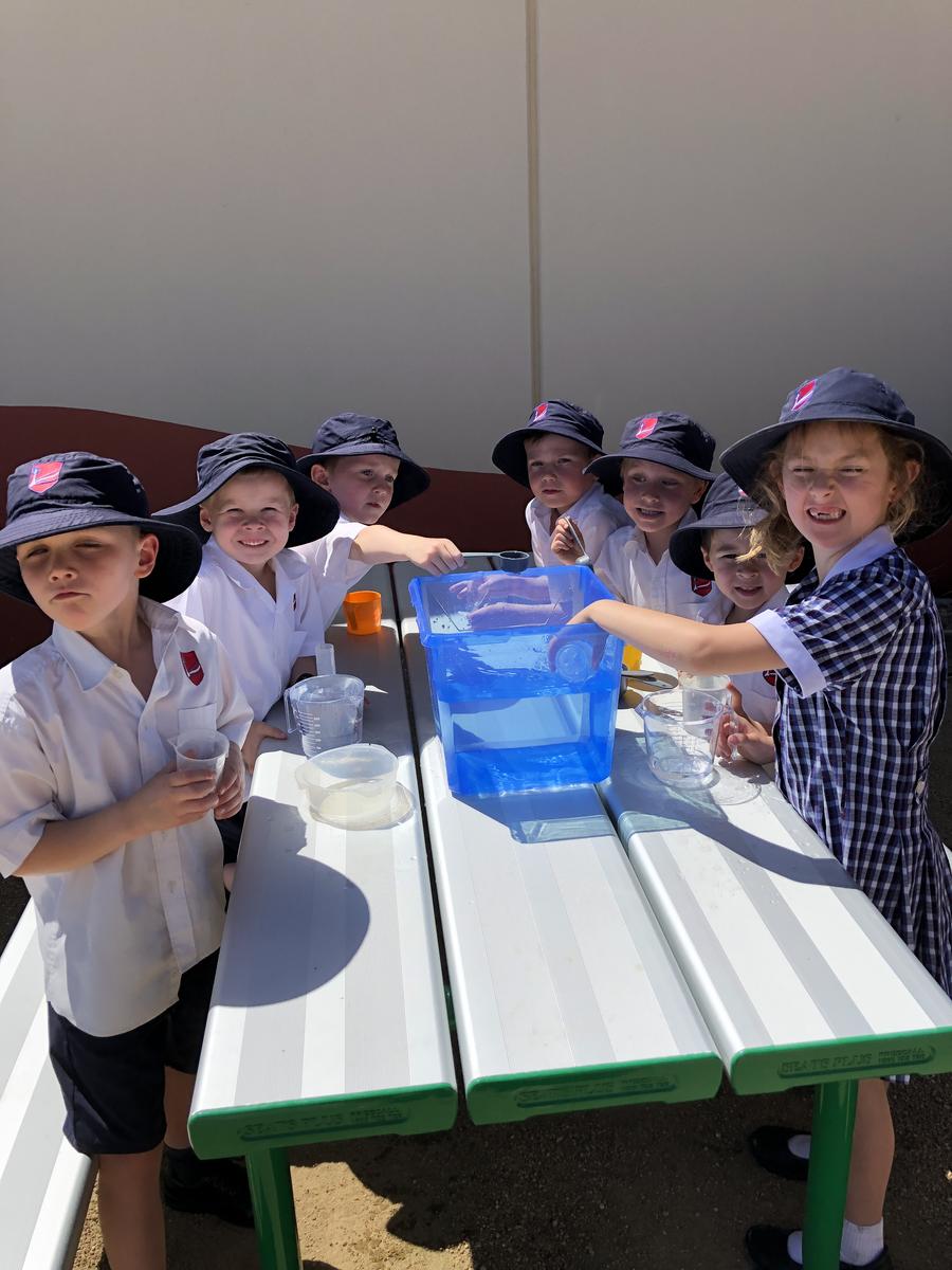 The Kinder’s enjoyed estimating and investigating the volume and capacity of different containers in the sunshine this week.