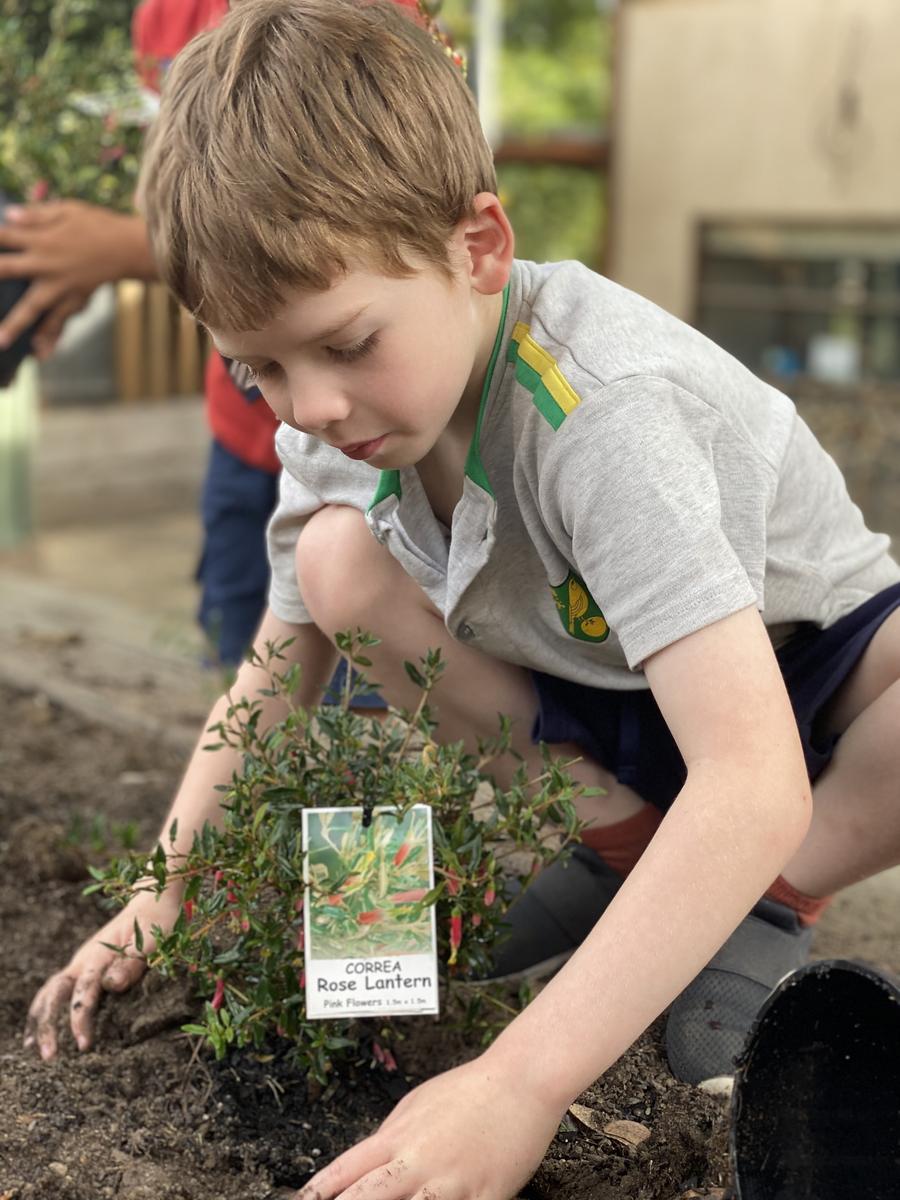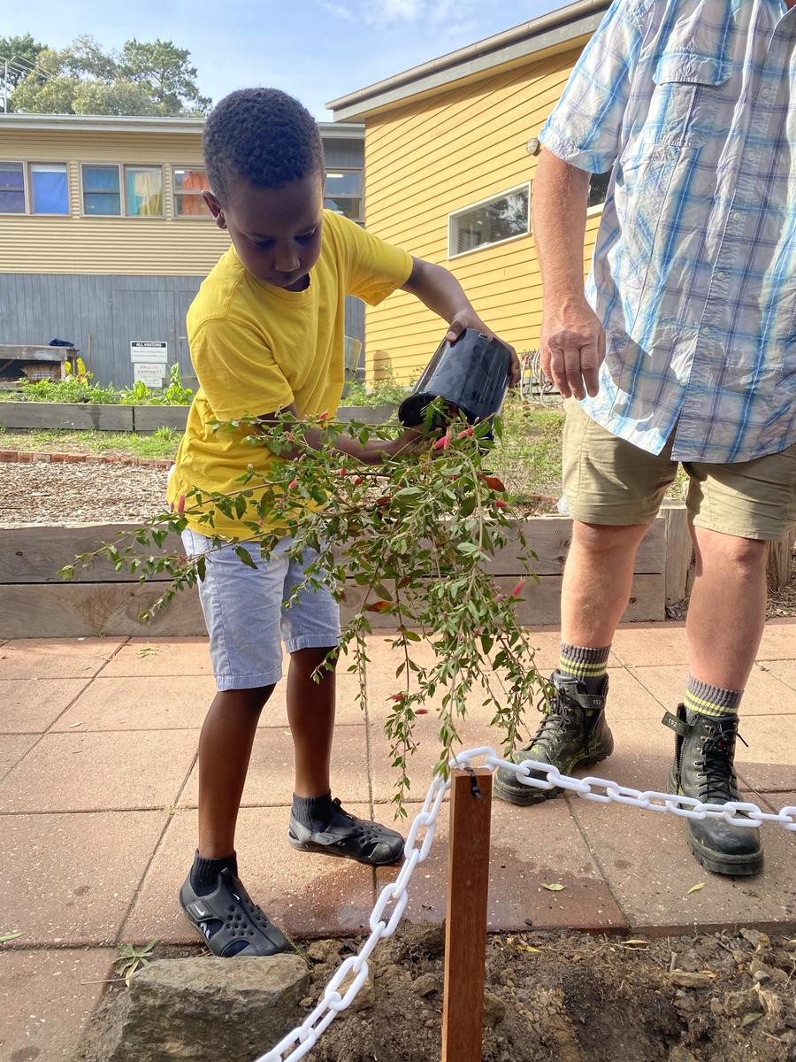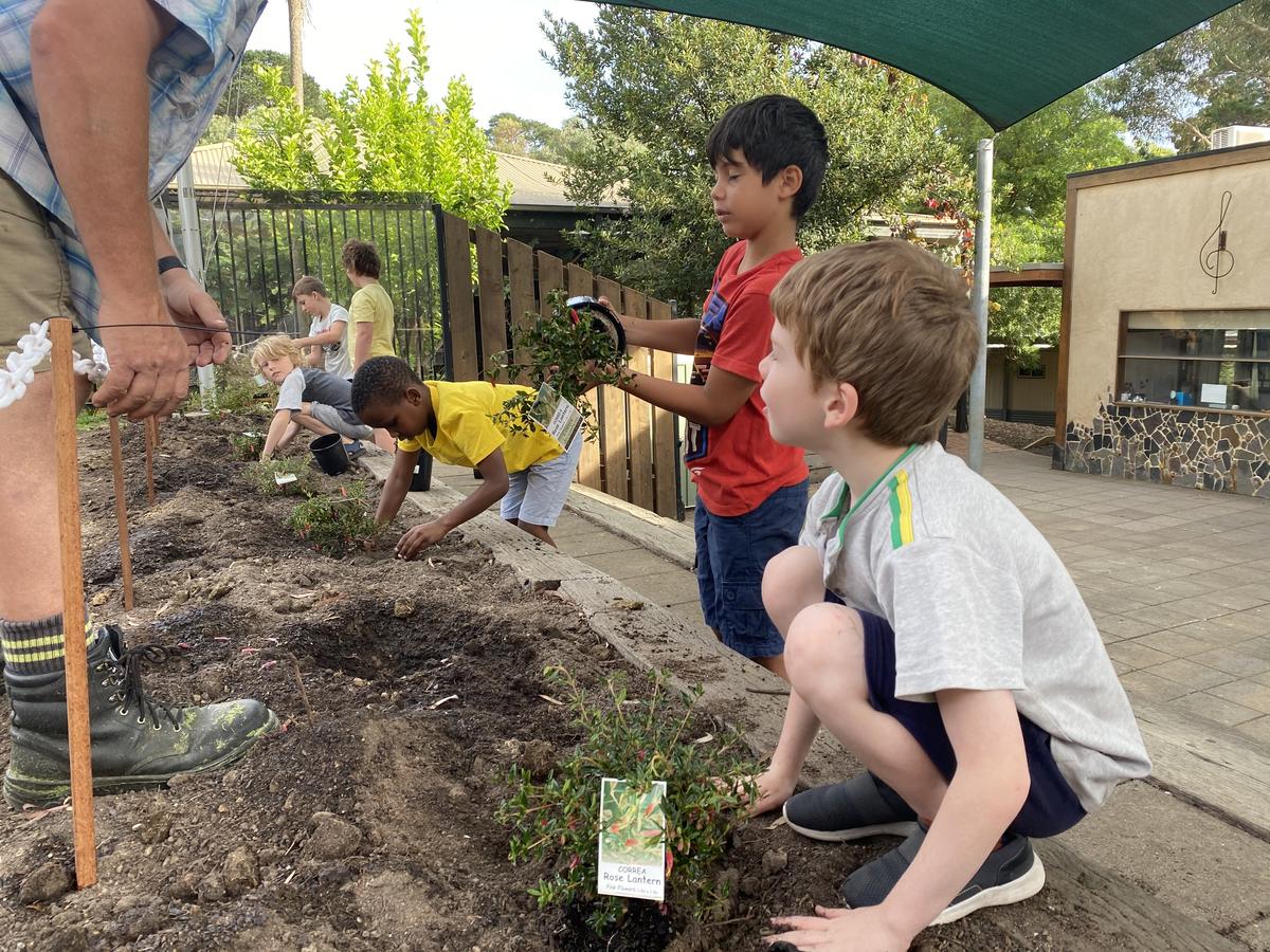 Prior to the school holidays Casey, Connor, Diana, Eli, Jeremiah, Joshua and Philip from Cycle 2 helped Doug and Alan with planting some CORREA Rose Lantern around the amphitheater steps.