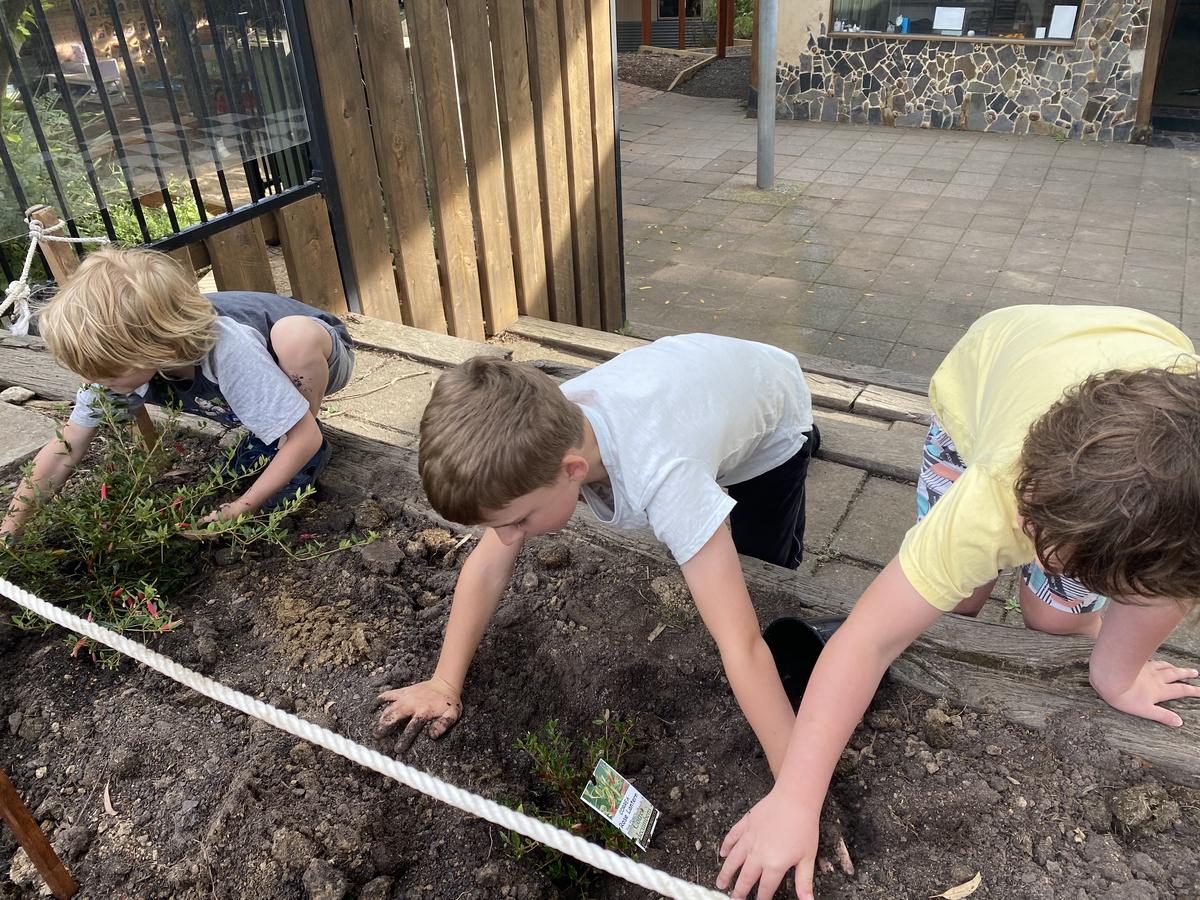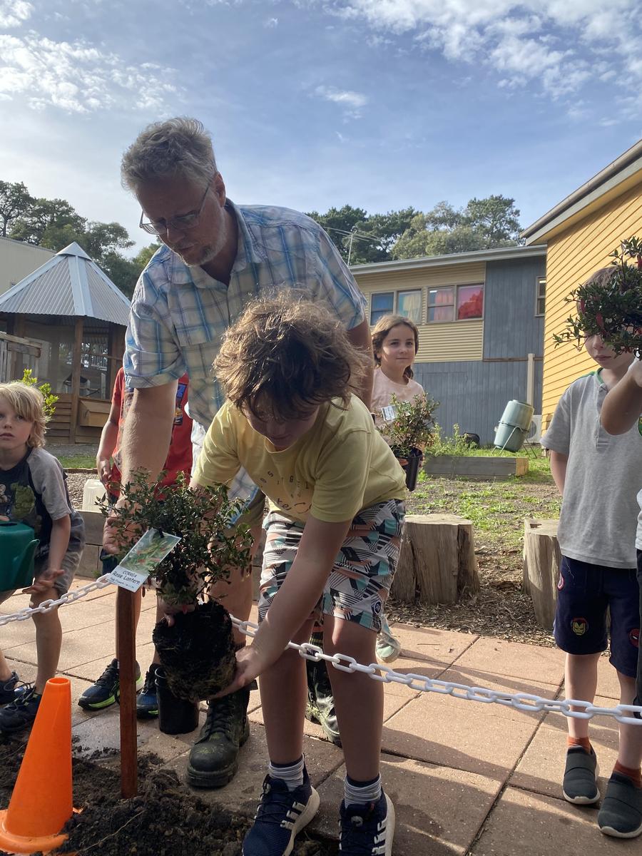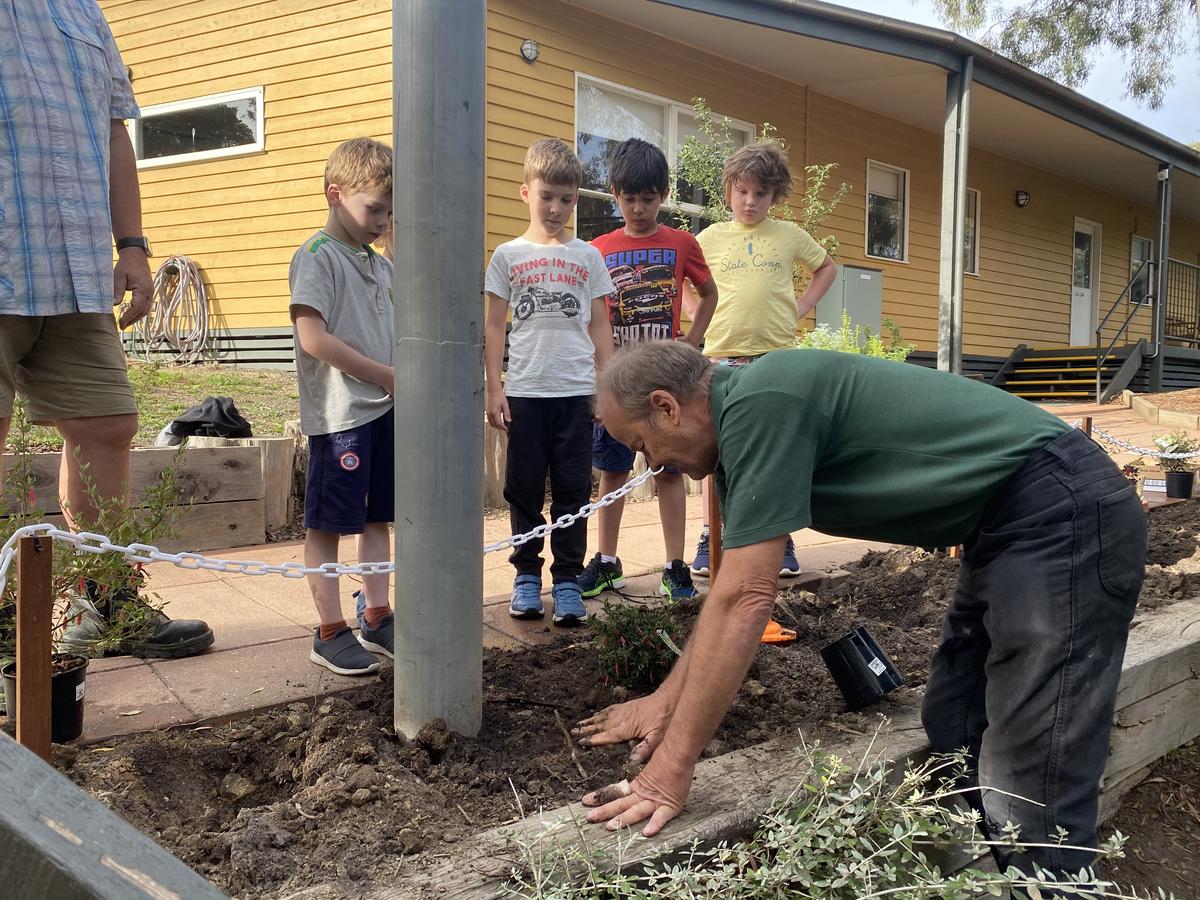 Prior to the school holidays Casey, Connor, Diana, Eli, Jeremiah, Joshua and Philip from Cycle 2 helped Doug and Alan with planting some CORREA Rose Lantern around the amphitheater steps.