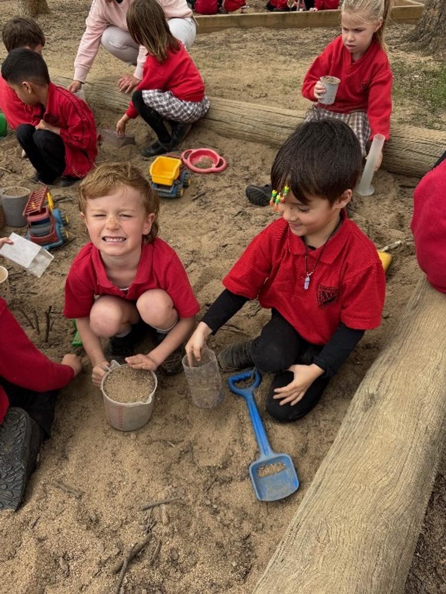 This term, we have been exploring the concept of volume and capacity. Students have enjoyed hands-on activities comparing how much different containers can hold by filling and pouring sand in the sandpit. Alongside this, we have been focusing on addition. Through games and hands-on activities, students have been learning to combine groups of objects to find the total.