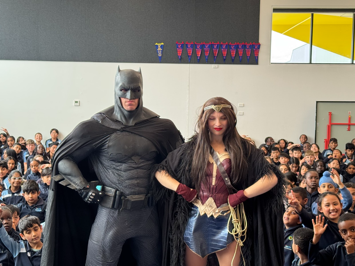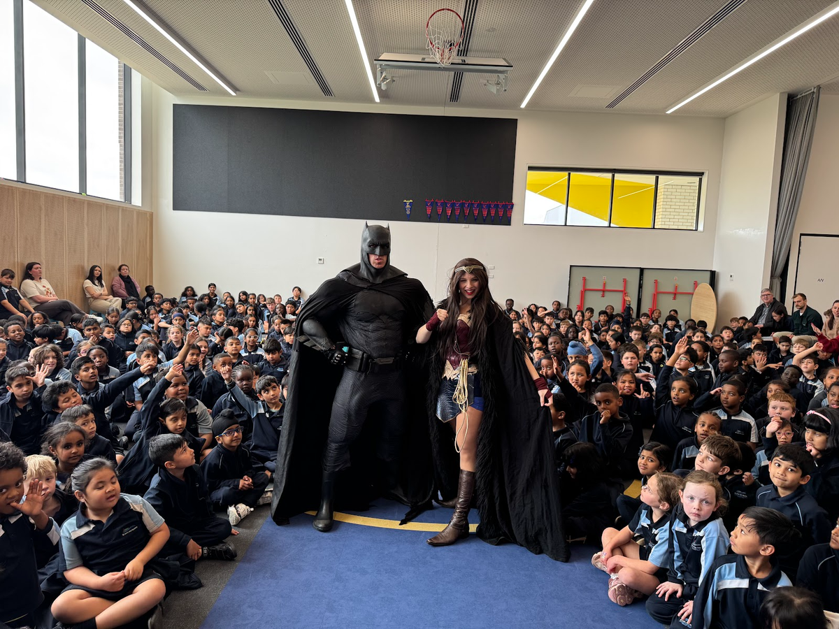 To launch this year’s Book Week celebrations, we were visited by DC Comics’ Batman and Wonder Woman. They were full of energy, kept everyone engaged, and even had us up on our feet dancing!