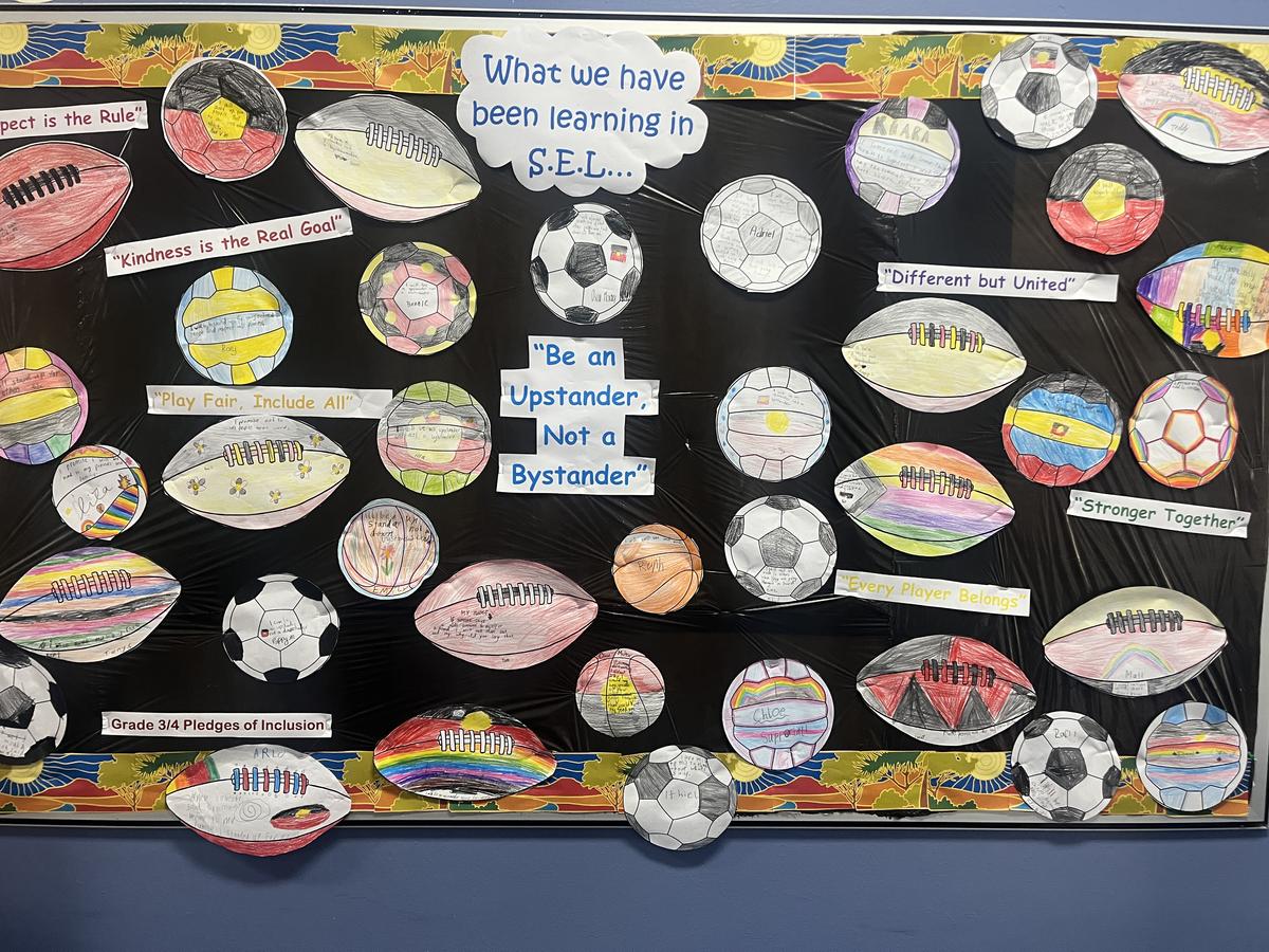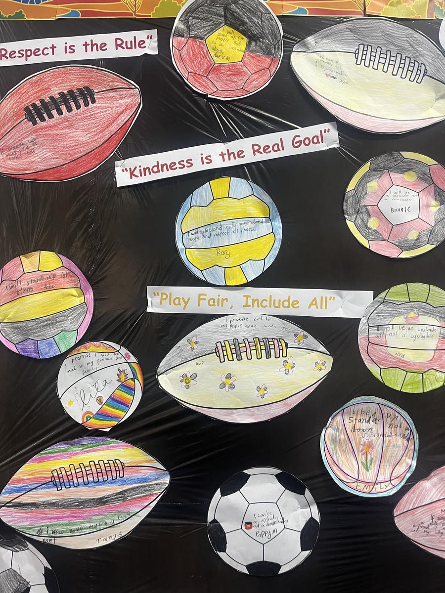 This week, the Grade 3/4s explored inclusion in sport. Due to the nature of what has been going on in the news lately, the senior classes were very receptive to open and honest class discussions about all kinds of inclusion in our community. We discussed what it means to make sure everyone feels welcome on a team, no matter their background, abilities, or interests. Students took part in a classroom activity where they worked together on “team goals” and reflected on how kind and fair play makes sport more enjoyable for everyone. Check out the 3/4 display in the office area.