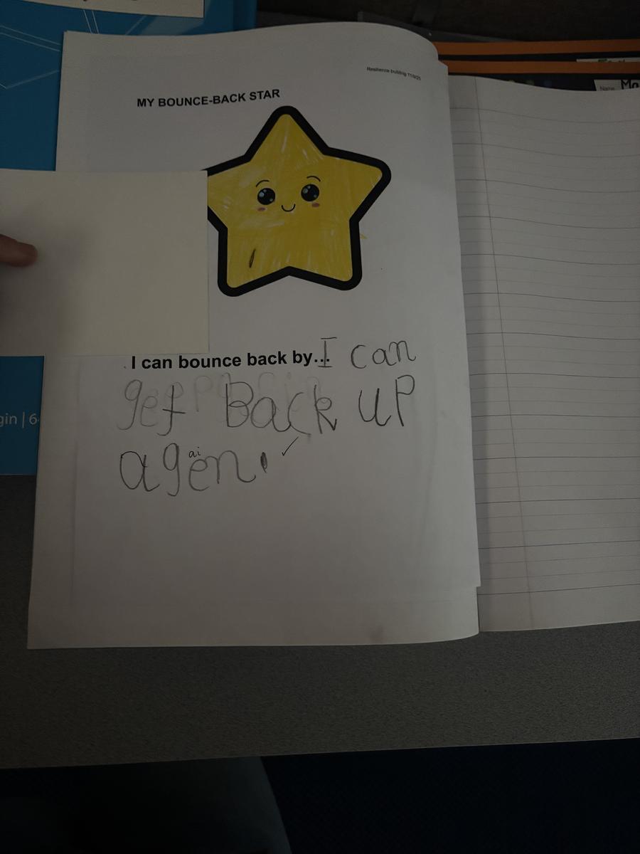 Our Prep students explored the idea of resilience this week. We talked about what the word means “bouncing back” when things don’t go our way. Through a story called the Nervous Bear, some ball catching games and class discussion, we shared times when we kept trying, even if something was tricky or didn’t work the first time. We made Bounce-back stars in our books.